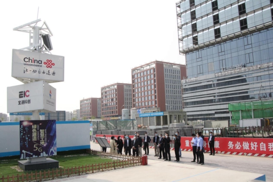 4月14日,住房城鄉建設部總工程師李如生、工程質量安全監管司副司長王英姿一行來到一公司打造的全國首個5G智慧工地——北京京東總部二期C座項目調研,并對項目5G探索運用成果表示稱贊。