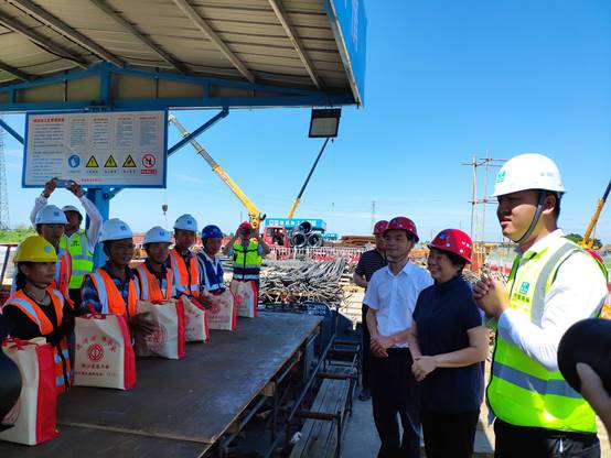 炎炎夏日送清涼,絲絲關懷暖人心。張衛華一行深入施工現場,對現階段的施工情況進行了調研,并為奮戰在一線的建設者們發放了慰問物品。