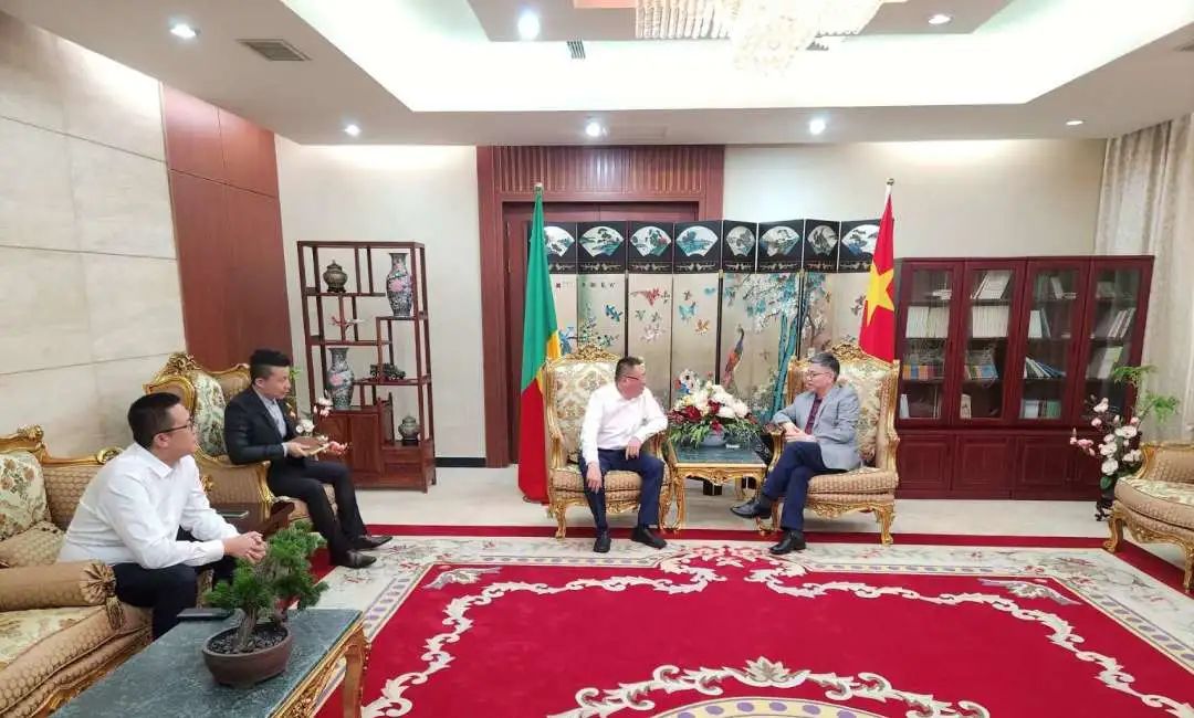 近期,中建八局一公司副總經理辛建龍帶隊到貝寧波多諾伏新議會大廈項目,開展為期兩周的督導調研活動,期間拜訪了中國駐貝寧大使彭驚濤。