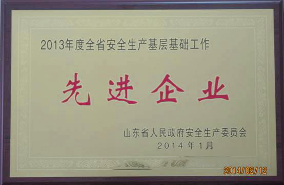 公司榮獲“山東省2013年度安全生產基層基礎工作先進企業”榮譽稱號