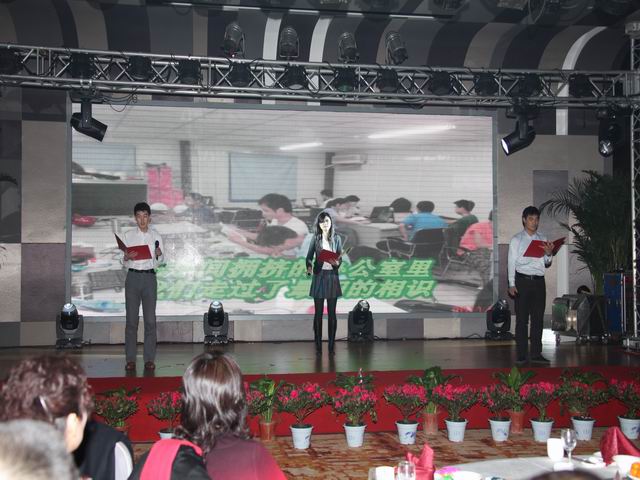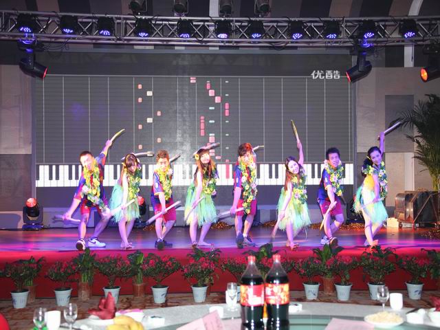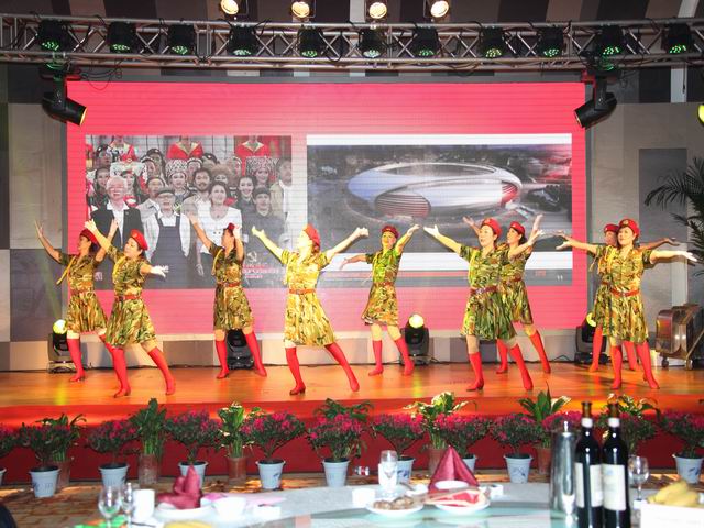 團拜會演出在富有激情的舞蹈《南非風情》中拉開了帷幕。整臺演出精彩紛呈,高潮迭起。員工自編自演的各類節目豐富多彩,幸運大抽獎更是讓員工驚喜連連,演出現場歡聲笑語不斷。相聲《咱公司的那點事》、小品《牛郎與織女》、啞劇《候車室的故事》讓現場觀眾笑成一片;歌曲《相親相愛》唱出了一公司員工團結互助是一家人的心聲;歌伴舞《荷塘月色》在現場燈光和舞臺的配合下,為大家呈現了一幅唯美的畫面;別具風格的三句半《公司喜事多》,讓大家過了一把情景劇版三句半隱;情景詩朗誦《閃亮的日子 閃亮的青春》則為大家講述了一群年輕人到工地后半年的切身感受;歌手楊坤的《無所謂》被演員模仿的惟妙惟肖,足以以假亂真;舞蹈串燒《青春旋律》讓大家感受到了公司年輕人的青春活力;小品《施工情》講述了公司員工舍小家顧大家、令行禁止、使命必達的精神,得到了現場觀眾的共鳴。演出在氣勢磅礴的《走向復興》中圓滿落幕,出席團拜會的領導同志走上舞臺,同全體演員合影留念。