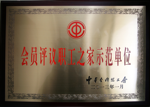 近日,公司工會榮獲全國會員評議職工之家示范單位榮譽稱號。