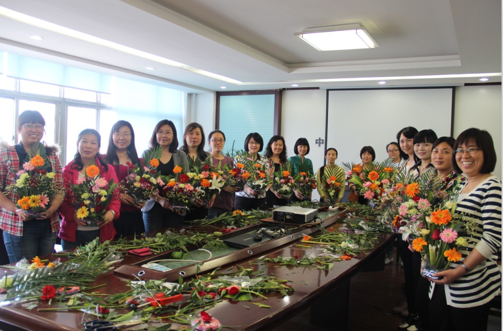 為充分發動女職工的積極性和創造性,豐富女職工的精神文化生活,濟南分公司工會舉辦了一場以“拓展幸福空間”為主題的母親節花藝DIY活動。來自分公司的20多位女職工會聚一堂,共同學習品賞插花藝術,怡情養性,提升品位。本次活動特地邀請花藝老師現場傳授插花的基本花型、技巧和注意事項等。DIY過程中,大家精心構思,選花、包扎、系繩、構圖造型,每一個步驟,每一道工序,都做得一絲不茍。原本雜亂無章的花束在大家精心布置下變成了一件件創意新穎、清雅別致的藝術作品。