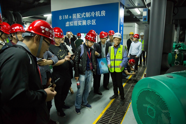 此次觀摩,中國(guó)安裝協(xié)會(huì)副會(huì)長(zhǎng)兼秘書(shū)長(zhǎng)楊存成,副秘書(shū)長(zhǎng)兼科技推廣部主任唐忠赤,上海市安裝行業(yè)協(xié)會(huì)秘書(shū)長(zhǎng)劉建偉,中國(guó)安裝協(xié)會(huì)BIM應(yīng)用與智慧建造分會(huì)常務(wù)副會(huì)長(zhǎng)王剛等相關(guān)領(lǐng)導(dǎo)共同參與。觀摩過(guò)程中,楊存成這樣對(duì)管理人員說(shuō)道:“該項(xiàng)目機(jī)房結(jié)構(gòu)復(fù)雜,排布條件差,設(shè)備多,管線復(fù)雜,如果沒(méi)有BIM做引領(lǐng),真的很難想象現(xiàn)場(chǎng)能夠有如此的施工精度,八局一在BIM技術(shù)行業(yè)真是處于領(lǐng)先地位!”