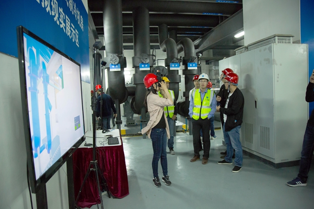 管理人員為觀摩隊(duì)伍現(xiàn)場(chǎng)講解制冷機(jī)房