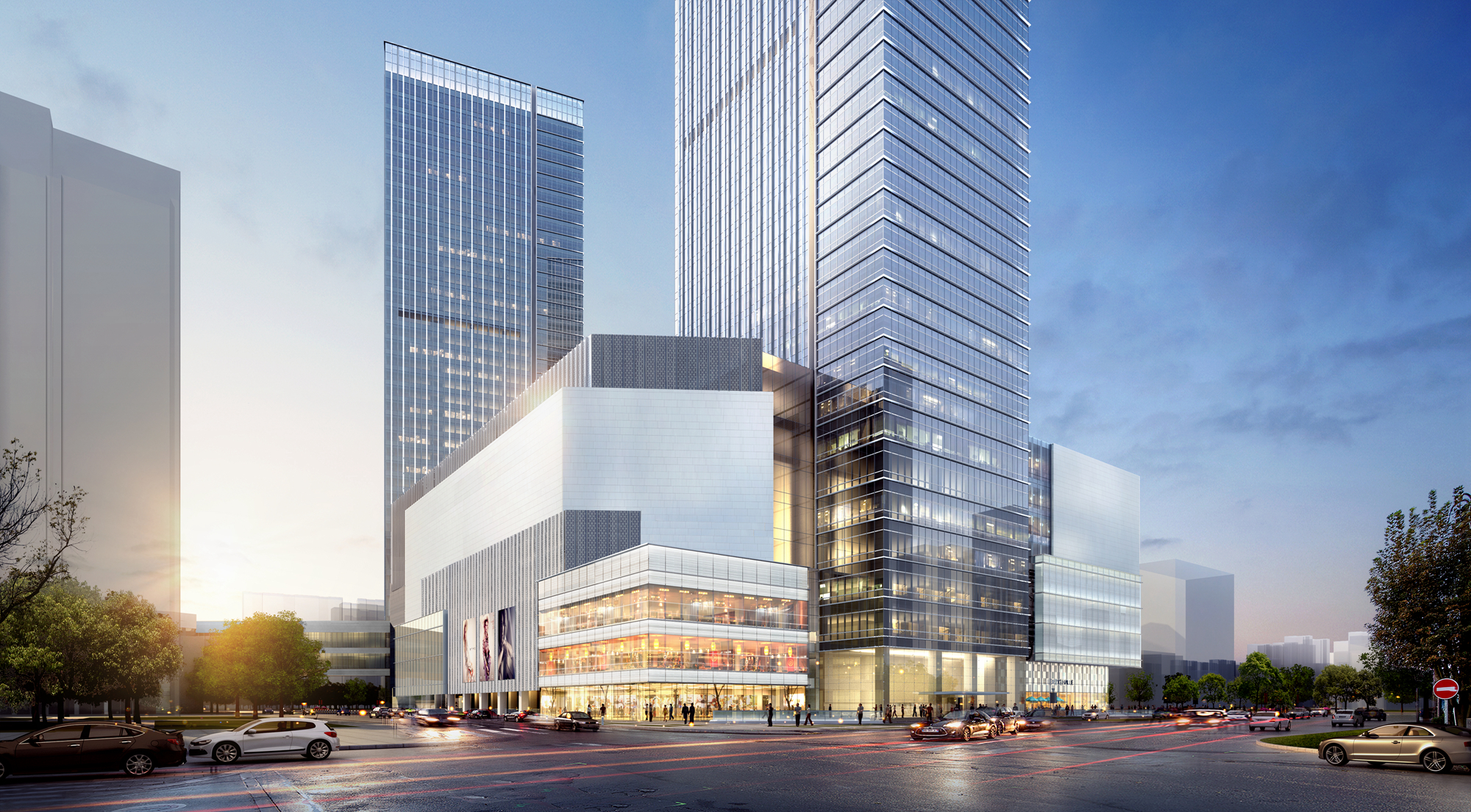 本工程總建筑面積約39萬㎡,由兩棟超高層塔樓和裙房組成。1#塔樓為5A級寫字樓,主體高度185m2#樓為超高層公寓,高度176米。商業裙房地下3層,地上8層,結構高度46.15m