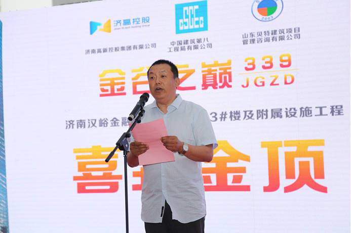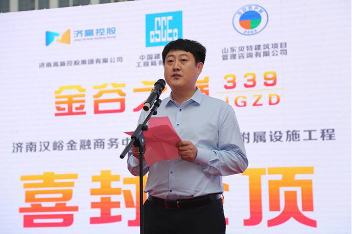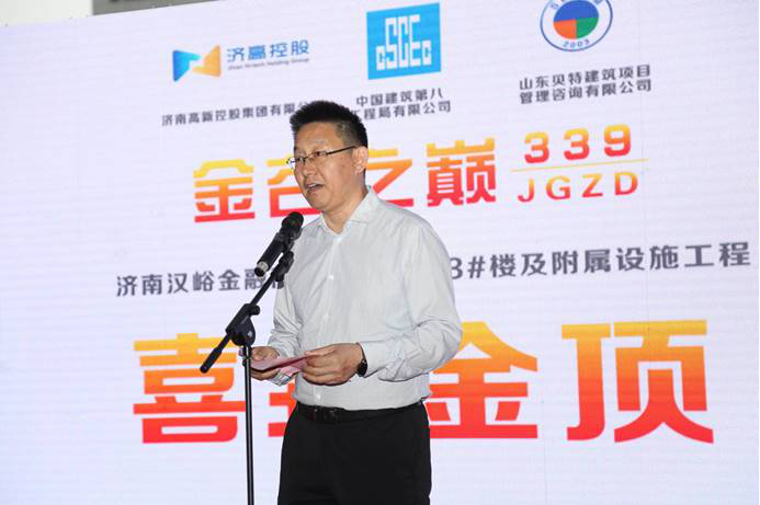 濟(jì)南高新控股集團(tuán)董事長(zhǎng)李昊、總經(jīng)理王賡,凱賓斯基中國(guó)區(qū)域戰(zhàn)略策劃總監(jiān)裴睿赫、山東貝特建筑項(xiàng)目管理咨詢公司有限公司董事長(zhǎng)秦昶,中建八局副總經(jīng)理、山東分局局長(zhǎng)張作合 ,公司總經(jīng)理哈小平等領(lǐng)導(dǎo)出席了封頂儀式。