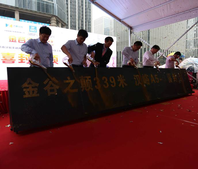 2018年6月9日,在一場(chǎng)夏日細(xì)雨中,濟(jì)南漢峪金融商務(wù)中心A5-3#樓順利封頂。隨著最后一斗混凝土被吊上339米高空,標(biāo)志著濟(jì)南的天際線再一次被刷新。