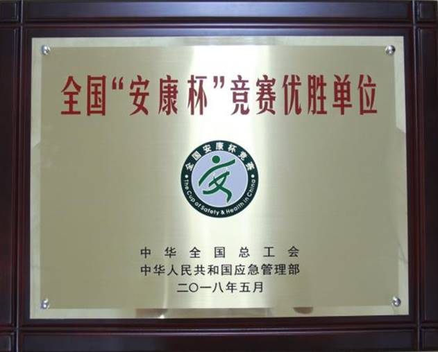 公司榮獲全國安全生產(chǎn)最高榮譽(yù)——全國“安康杯”競賽優(yōu)勝單位