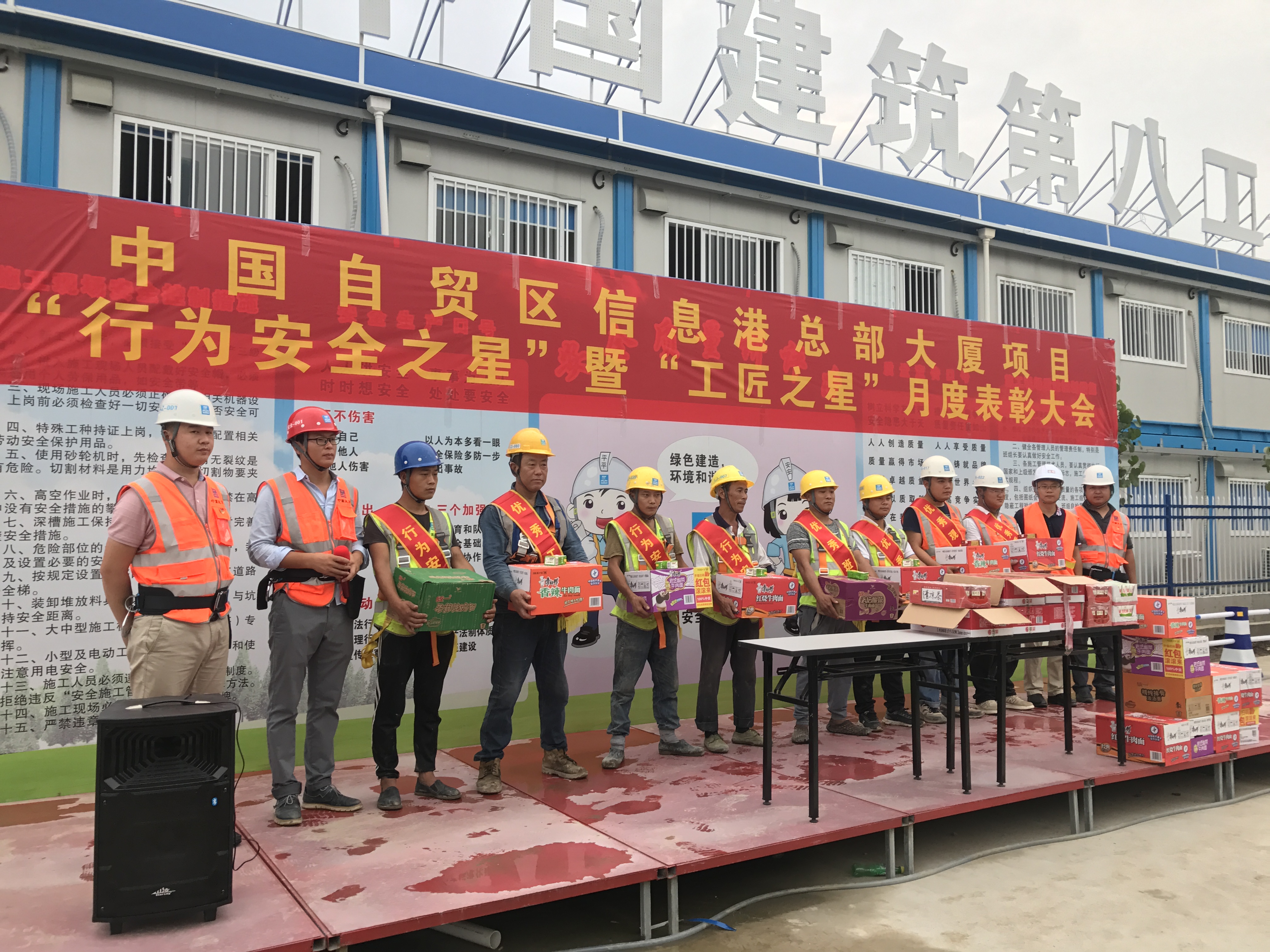 826日下午,公司中國(guó)自貿(mào)區(qū)信息港總部大廈項(xiàng)目部組織所有管理人員和分包單位管理人員及現(xiàn)場(chǎng)作業(yè)人員,舉行了八月“行為安全之星”暨“工匠之星”表彰大會(huì)。