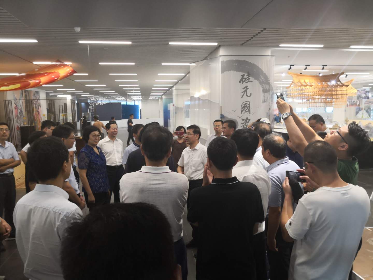 周連華書記一行聽取新城區開發辦公室領導的工作匯報后,立即對各展廳的準備工作進行了視察,視察過后周書記對會場的準備工作給予表揚,望建設單位、施工單位為淄博人民奉獻一場陶瓷琉璃的視覺盛宴。