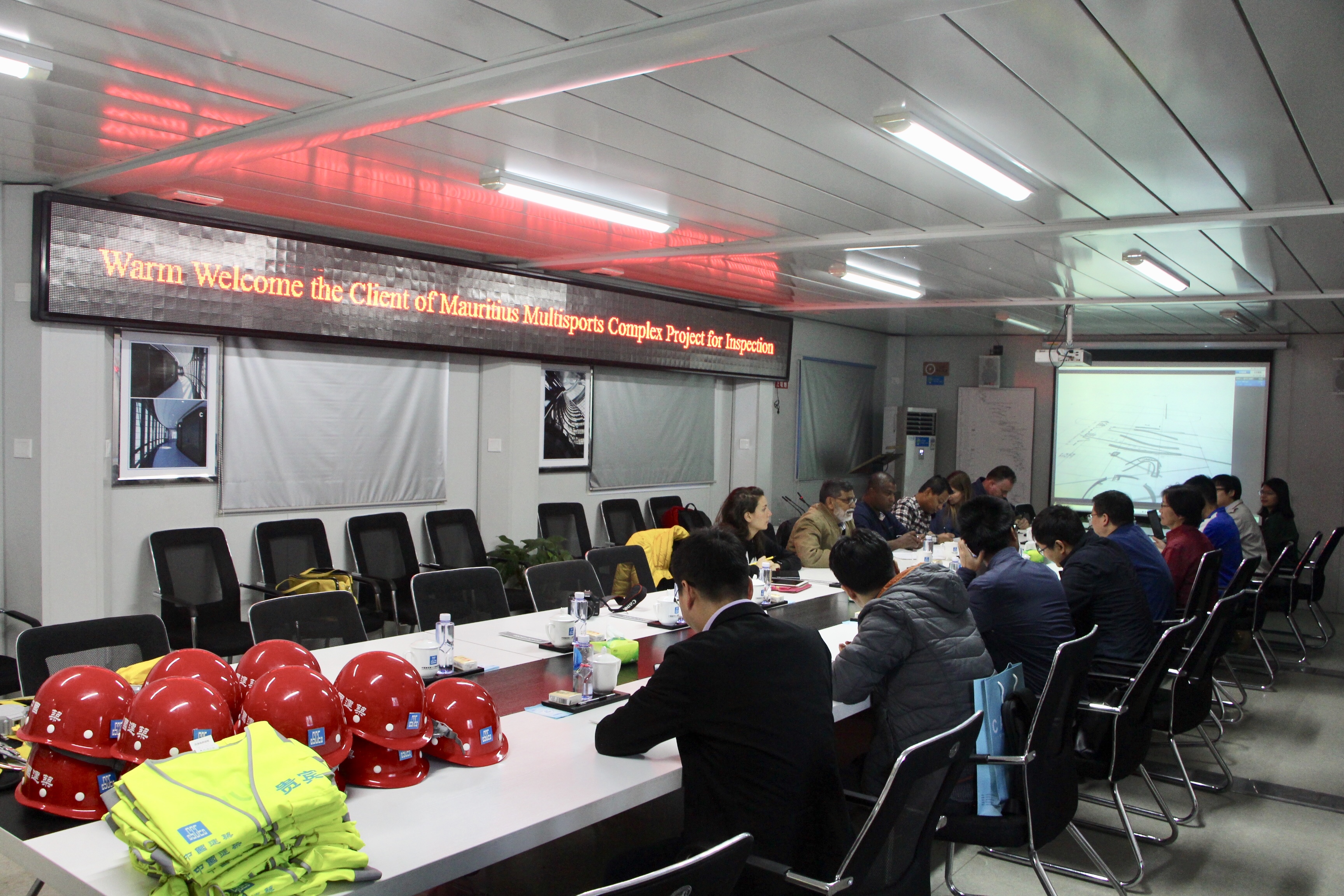 1031日上午,毛里求斯綜合體育場項目業主團隊來到麗澤SOHO項目進行觀摩,上海中建海外發展有限公司海外副經理劉俊句、公司裝飾公司助理總經理陳強、麗澤SOHO項目總工王東磊陪同。