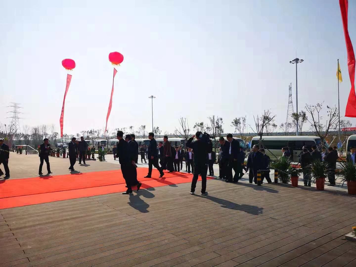 111日上午,山東省交通廳黨組書記、廳長江成,濰坊市委副書記、市長田慶盈,日照市委副書記、市長李永紅,山東高速集團黨委書記、董事長鄒慶忠,山東省交通運輸廳副廳長王其峰,濰坊市副市長王樹華,中建股份基礎設施事業部總經理張翌,中建八局總經理、黨委副書記高波等百余人的濰日高速通車儀式觀摩團來到濰日高速安丘服務區房建精裝修項目進行觀摩指導,董事長董文祥、裝飾公司總經理于海、副總經理于永波、總工程師姜樹仁、項目經理程歆等陪同參觀。