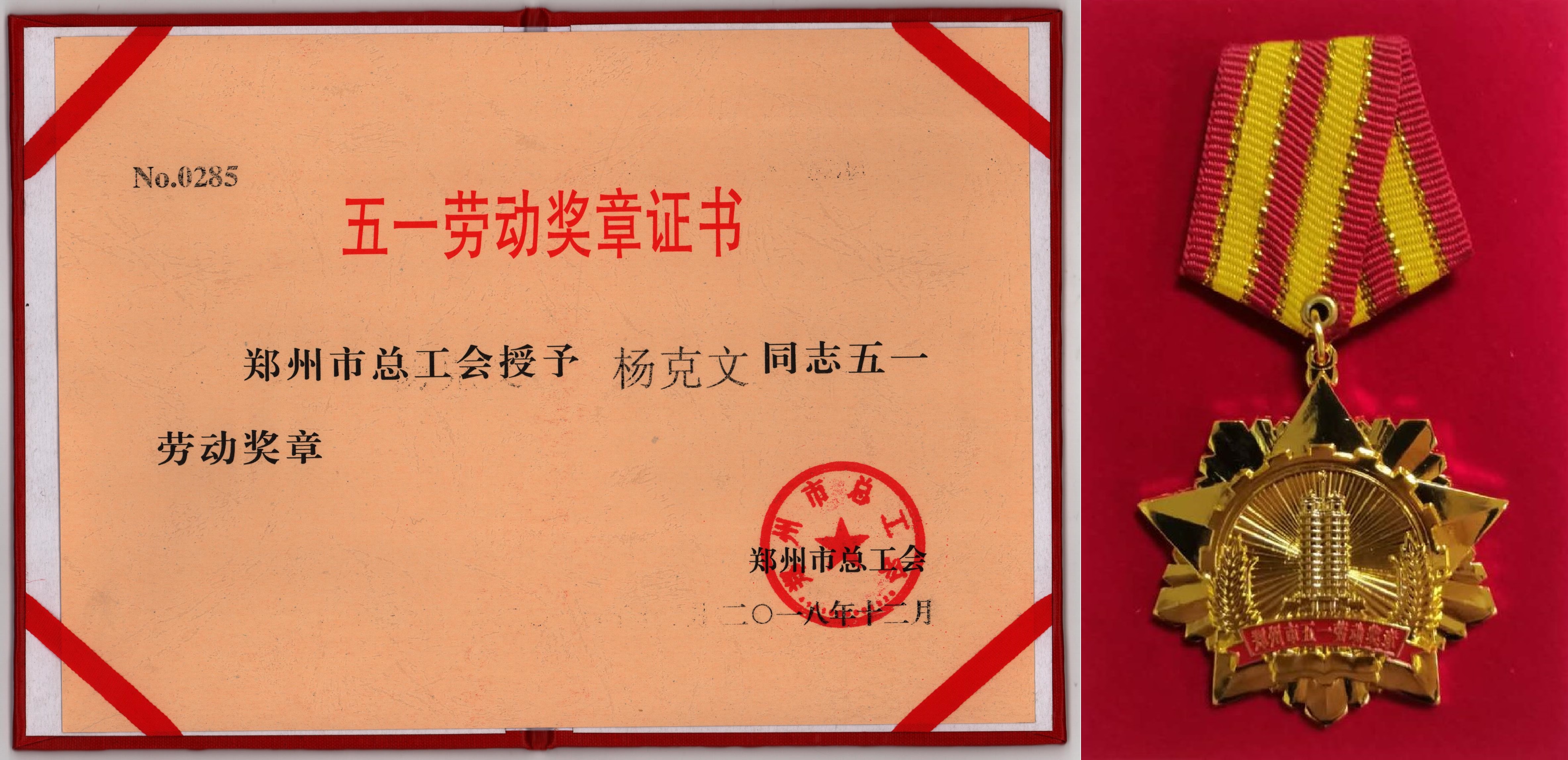 五一勞動獎章證書及五一勞動獎章