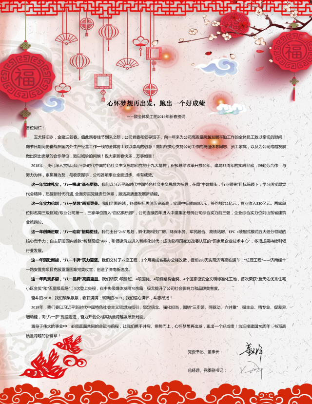 心懷夢(mèng)想再出發(fā),跑出一個(gè)好成績(jī)——致全體員工的2019年新春賀詞