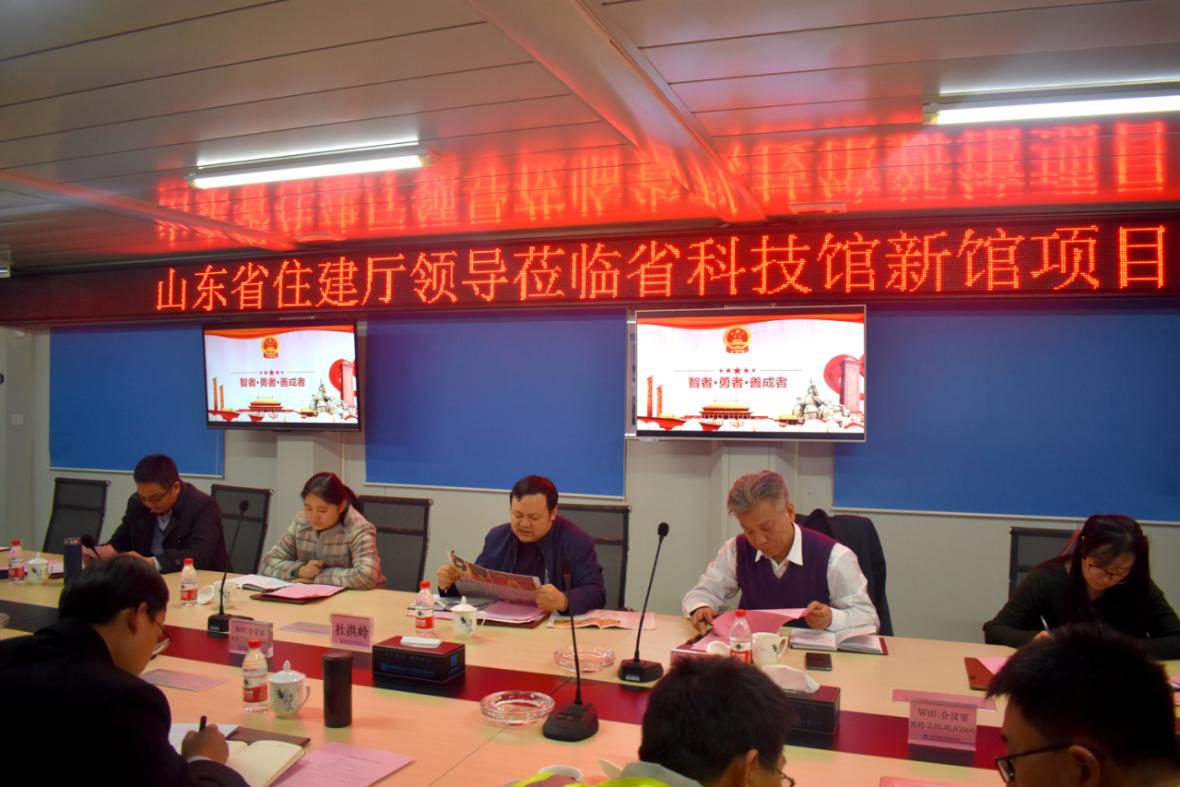 3月7日2,山東省住房和城鄉建設廳建筑工程監察專員李印一行與一公司科技部經理王波、濟南公司總工王良超以及省科技館、高鐵圍合、圖書展示樓黨支部成員在山東省科技館新館項目會議室舉行“同創共建”主題黨日活動會議省住建廳杜洪嶺同志主持。