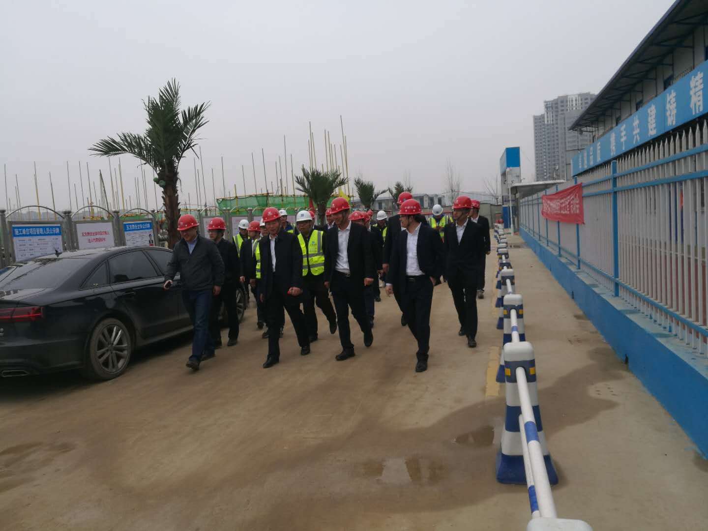 左總及業主領導對項目現場的安全文明施工及工程進度情況給予了高度評價。相信中建八局一公司完全有實力,在保證工程施工進度的同時,也不松懈質量及安全文明施工的管控,真正建造完成精品工程。
