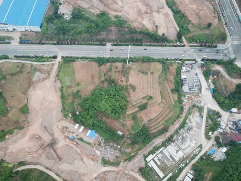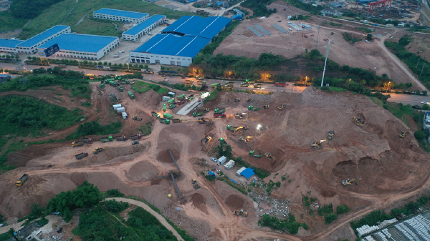 項目部自該地塊摘牌當夜即進入現場開展施工,現場清障工作情況復雜,項目通過細化分工,責任到人,工作限時等措施,項目自2019625日進場僅用23天,先后清除了當地村民青苗、隧道項目部辦公區、隧道項目加工場、砂石廠、預制構件廠、10KV高壓線、31米高信號塔、民房等障礙物。同時項目部適時調整施工總體部署,根據清障進度及時插入施工,為確保預售進度節點爭取了寶貴的時間。