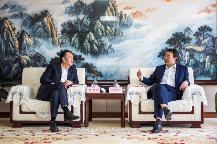 4月24日上午,校榮春拜會山東高速集團黨委書記、董事長鄒慶忠,就雙方進一步加強基礎設施領域的合作展開洽談。山東高速集團黨委常委房建果,集團工程管理部部長劉洪武,軌道交通集團黨委書記、董事長李曉榮,建設管理集團黨委書記、董事長范曉東,集團辦公室負責人宋金偉等參加會見。