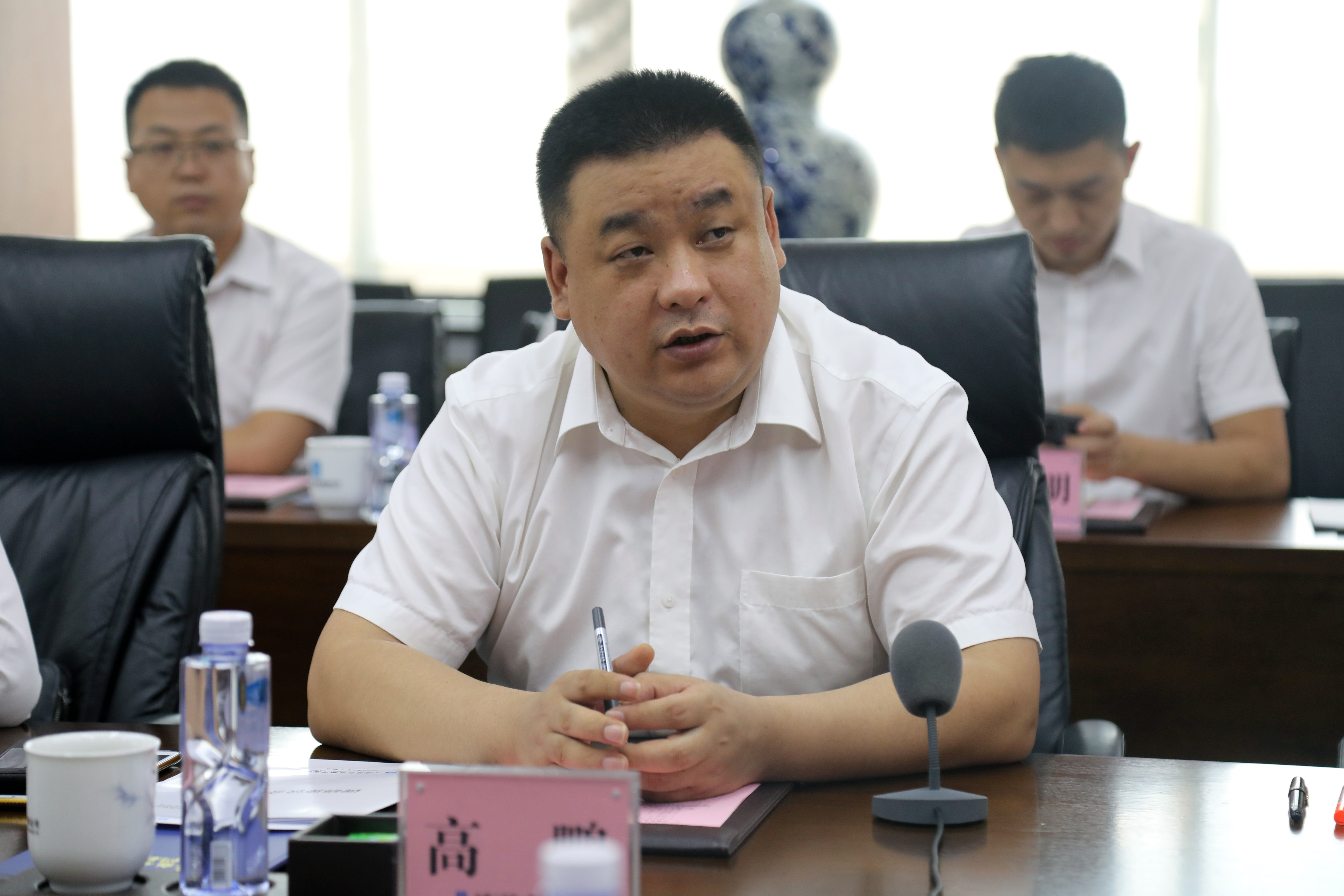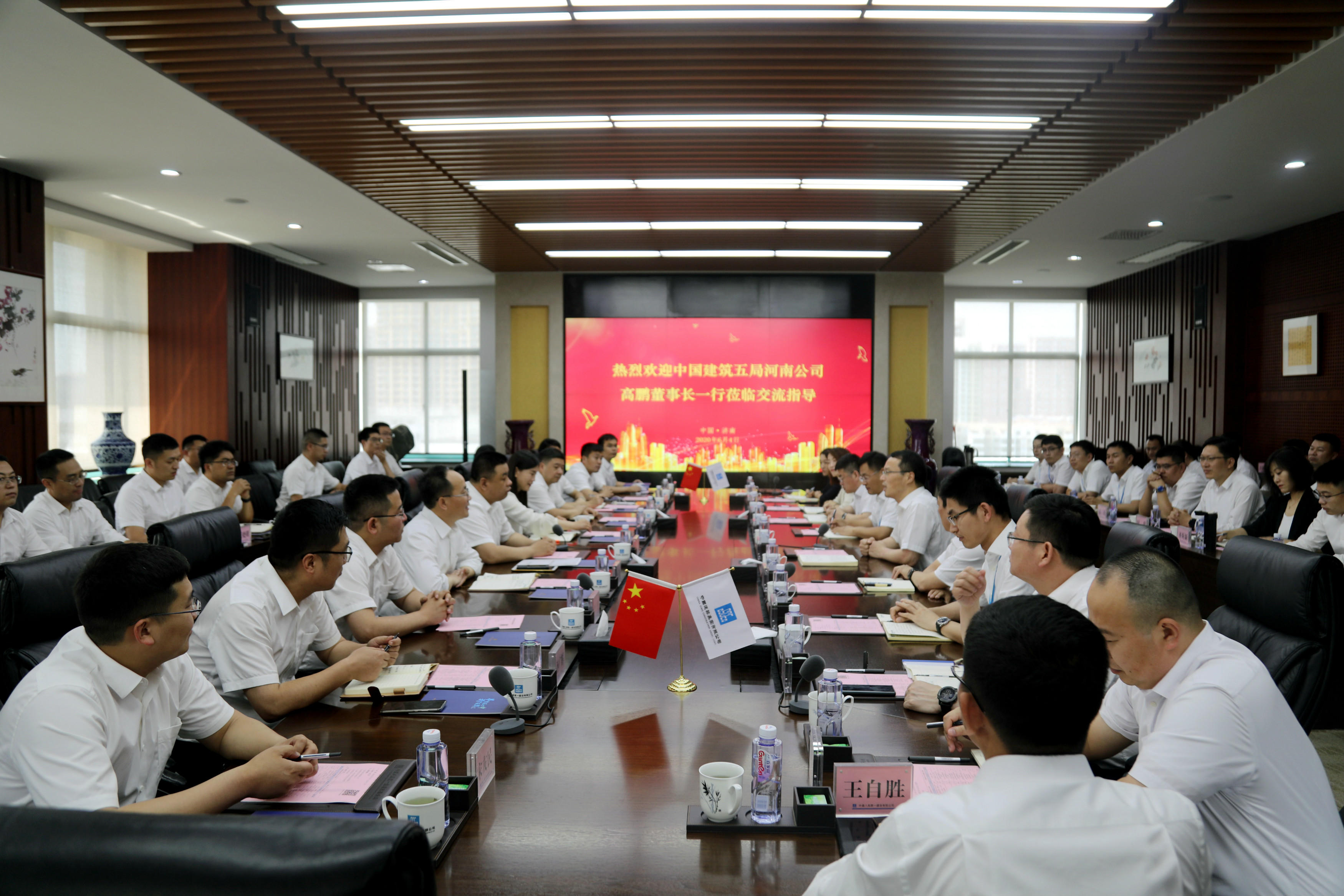 6月4日,中建五局總經理助理、西北分局總經理、河南公司黨委書記、董事長高鵬,中建五局河南公司黨委副書記、紀委書記、工會主席李梅,副總經理鐘馳,副總經理、總工程師游杰勇,總經濟師賈彥魁,副總經理羅庚,副總經理孫廣輝及總部部門負責人一行22人到訪公司對標交流。
