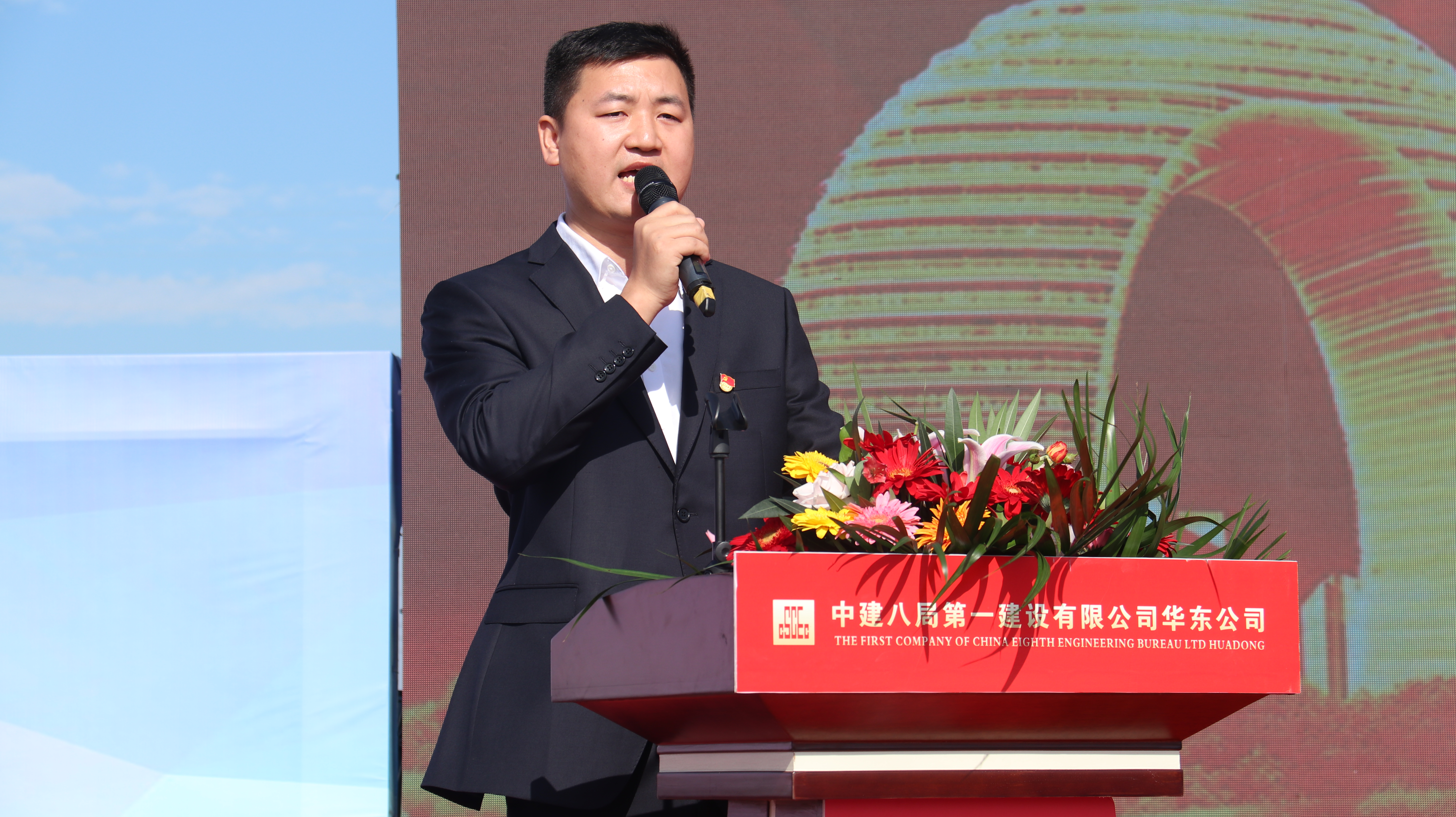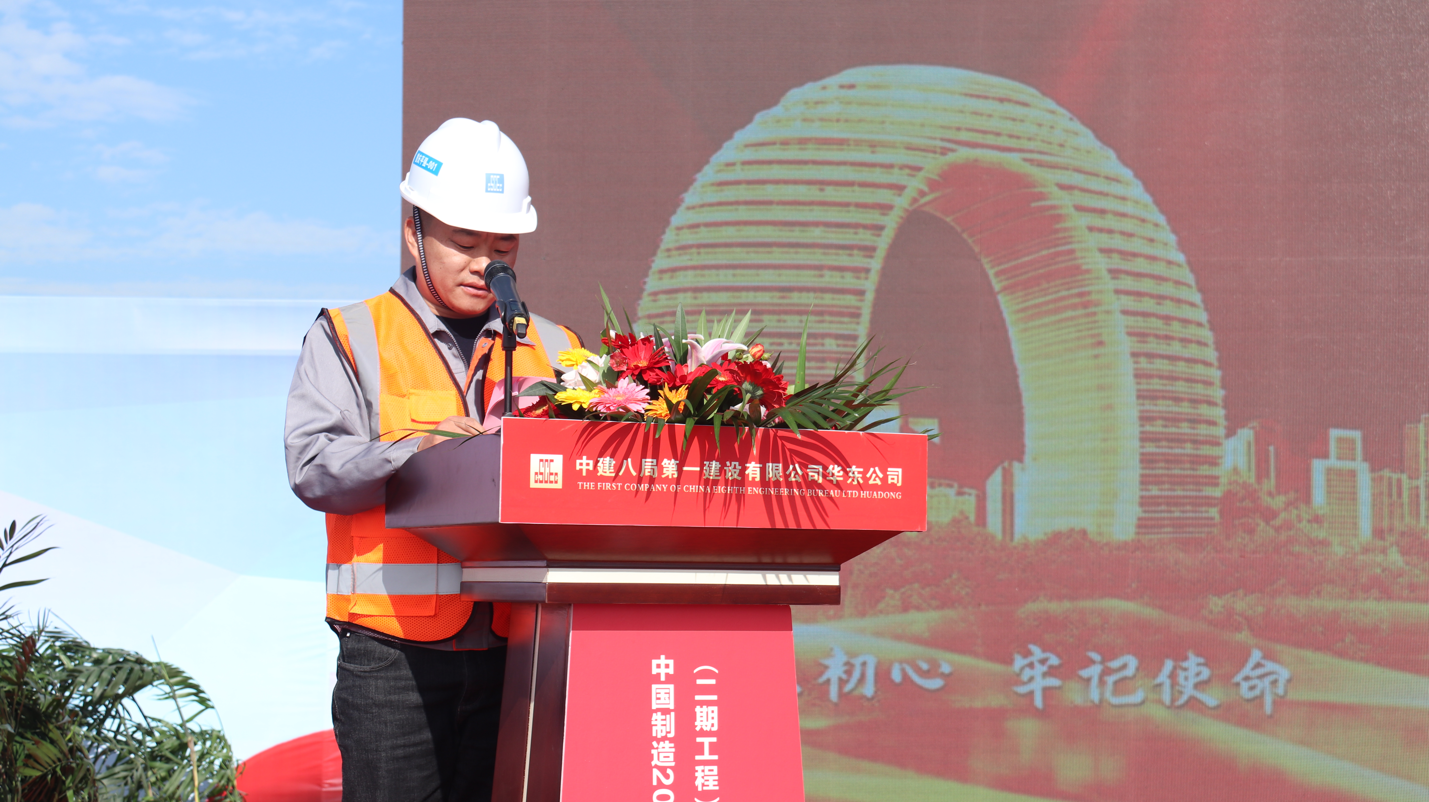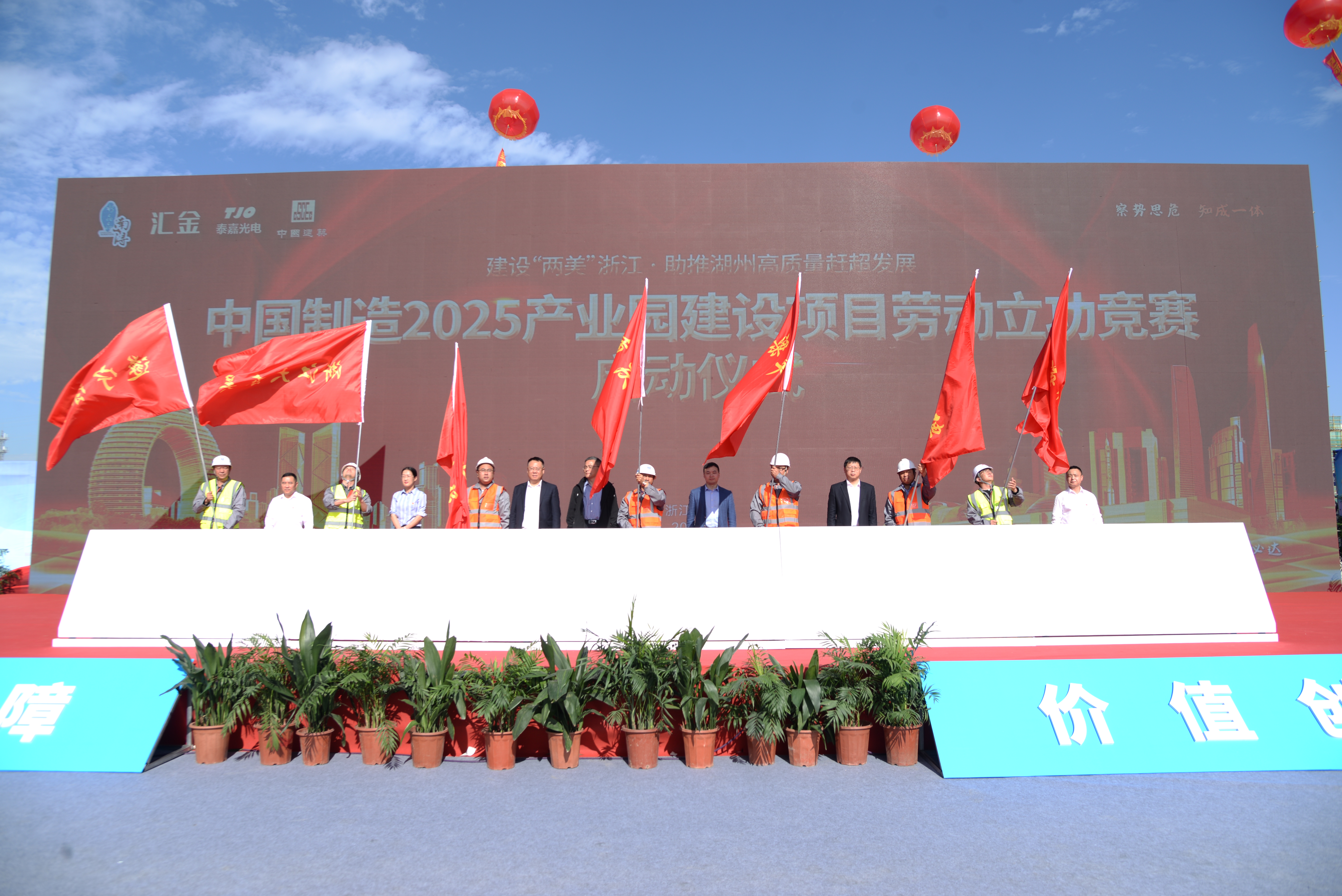 湖州市總工會副主席楊少章,南潯區總工會黨組書記、副主席周洪聲,南潯區總工會黨組成員、經審會主任陸敏,南潯經濟開發區工會工作委員會主任李安琪,湖州市南潯區交通投資集團有限公司總經理姚強英,湖州南潯新城投資發展集團有限公司總經理張記生,浙江泰嘉光電科技有限公司廠務總監沈德曰;中建八局工會副主席王曉波,華東分局黨委書記王立峰,一公司黨委副書記、工會主席劉文納以及項目管理人員、分包單位代表、工人代表共計500余人參與活動,活動由華東公司黨總支書記王為主持。