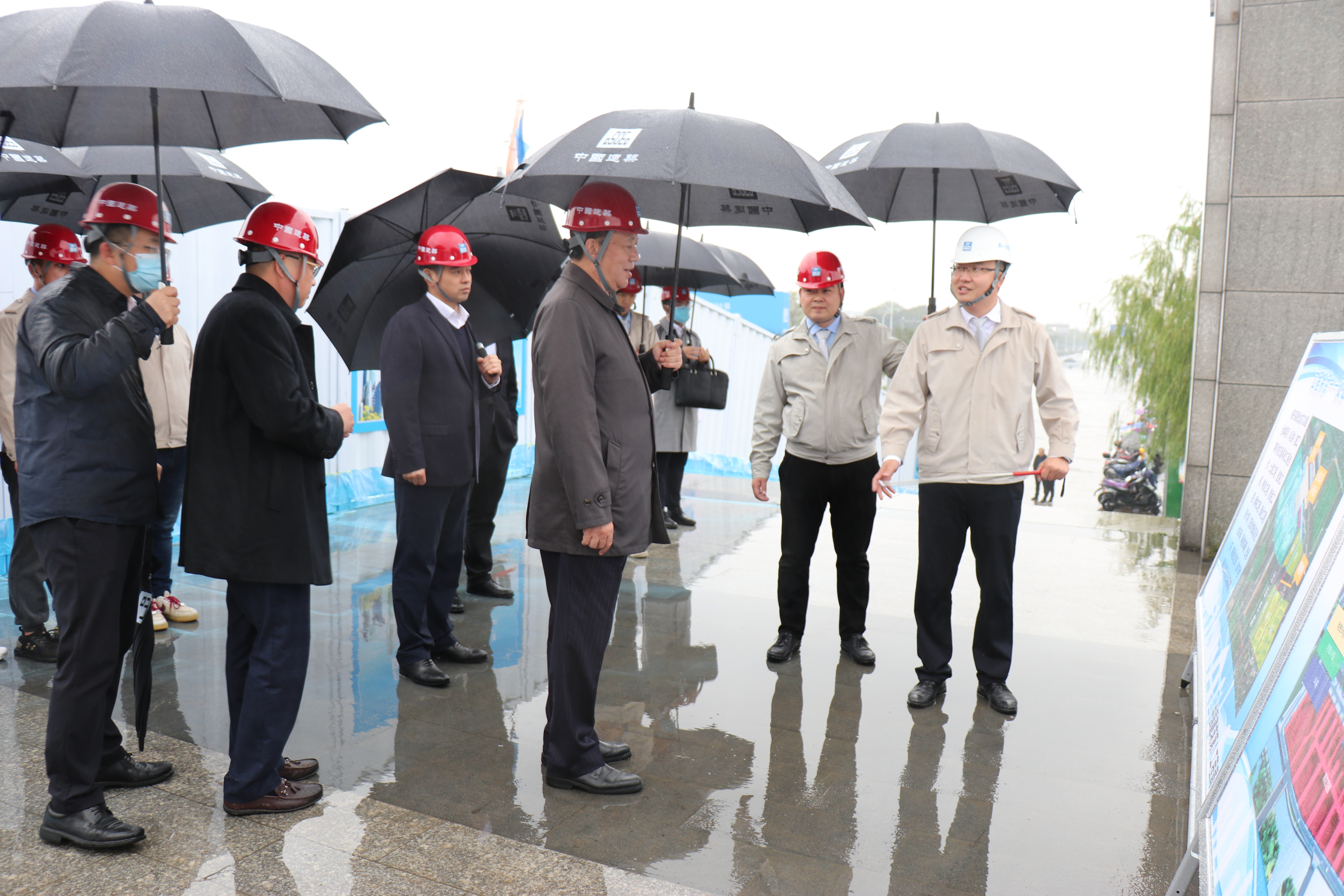 校榮春一行抵達項目后,直奔施工現場,查看了項目整體建設情況,詳細了解了工程概況、總平面布置、工程特點及施工進展等情況。