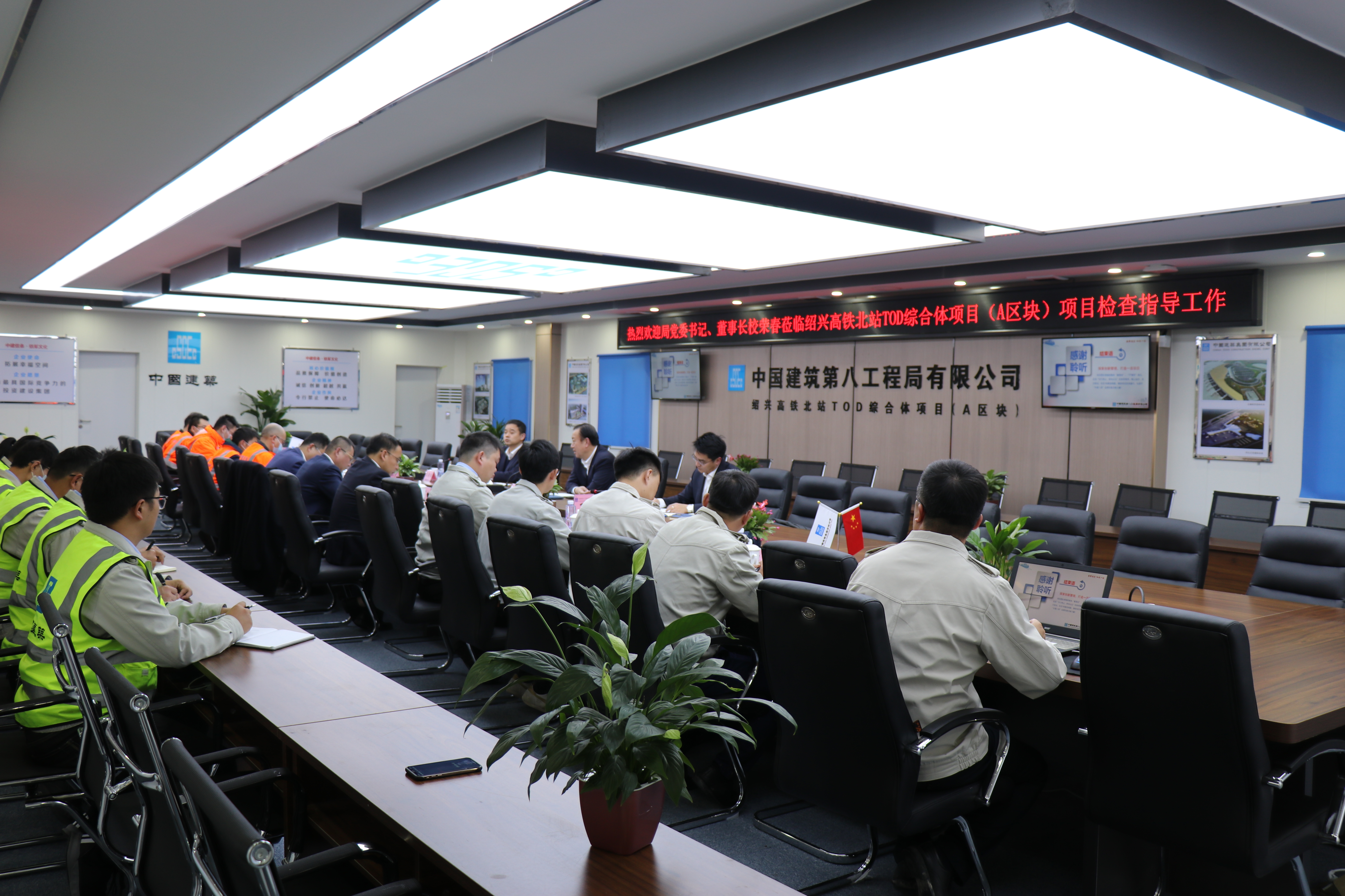 1127日,中建八局黨委書記、董事長校榮春到紹興高鐵北站TOD綜合體項目調研,聽取了項目整體建設情況的匯報,并提出指導意見。局工程管理部副總經理汪黃東,一公司華東公司總經理辛建龍,軌道公司浙江事業部經理蔣彬,總承包項目負責人劉濤等參加。