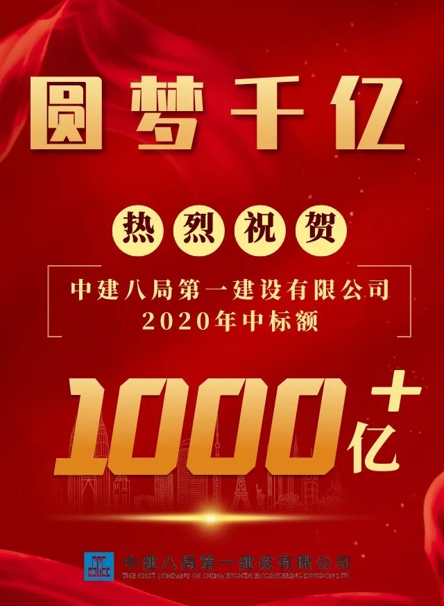 2020年面對疫情與經濟下行的雙重考驗,中建八一逆勢突圍,全面決勝“八一夢”,年度中標額突破1000億大關,步入千億級企業新時代。