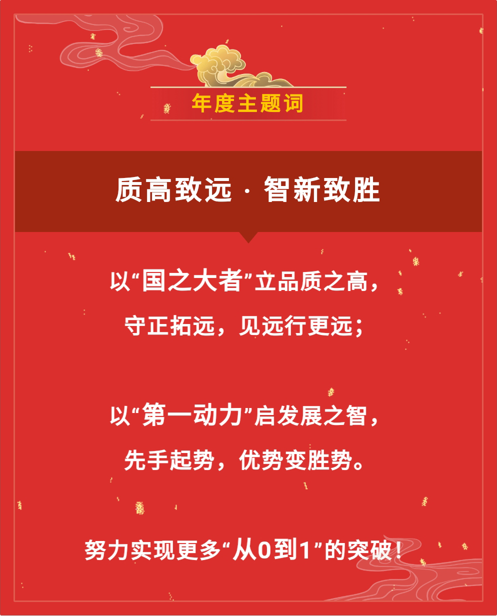 1月1日,中建八一發布2021年度主題詞——“質高致遠 · 智新致勝”:以“國之大者”立品質之高,守正拓遠,見遠行更遠;以“第一動力”啟發展之智,先手起勢,優勢變勝勢。努力實現更多“從0到1”的突破!
