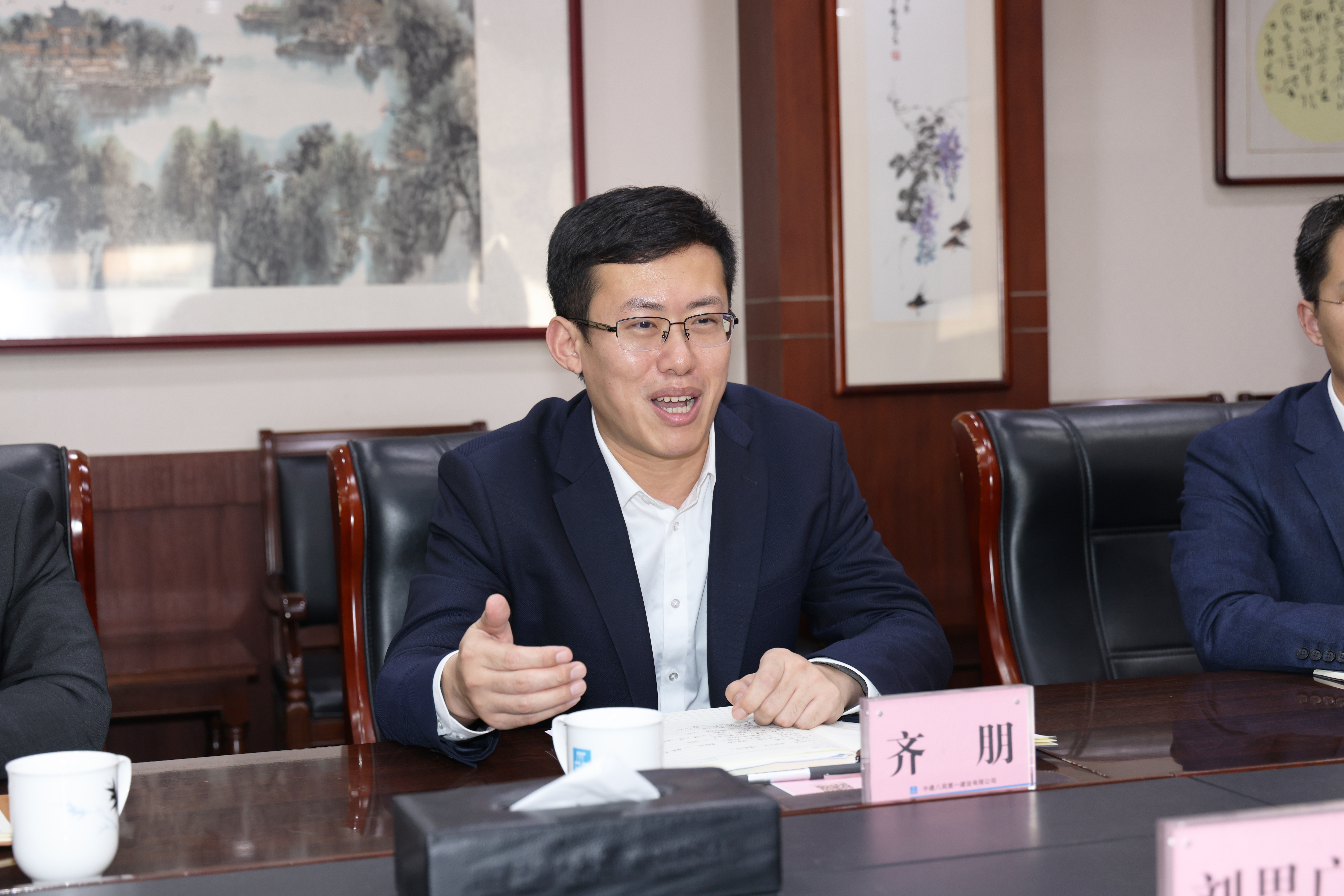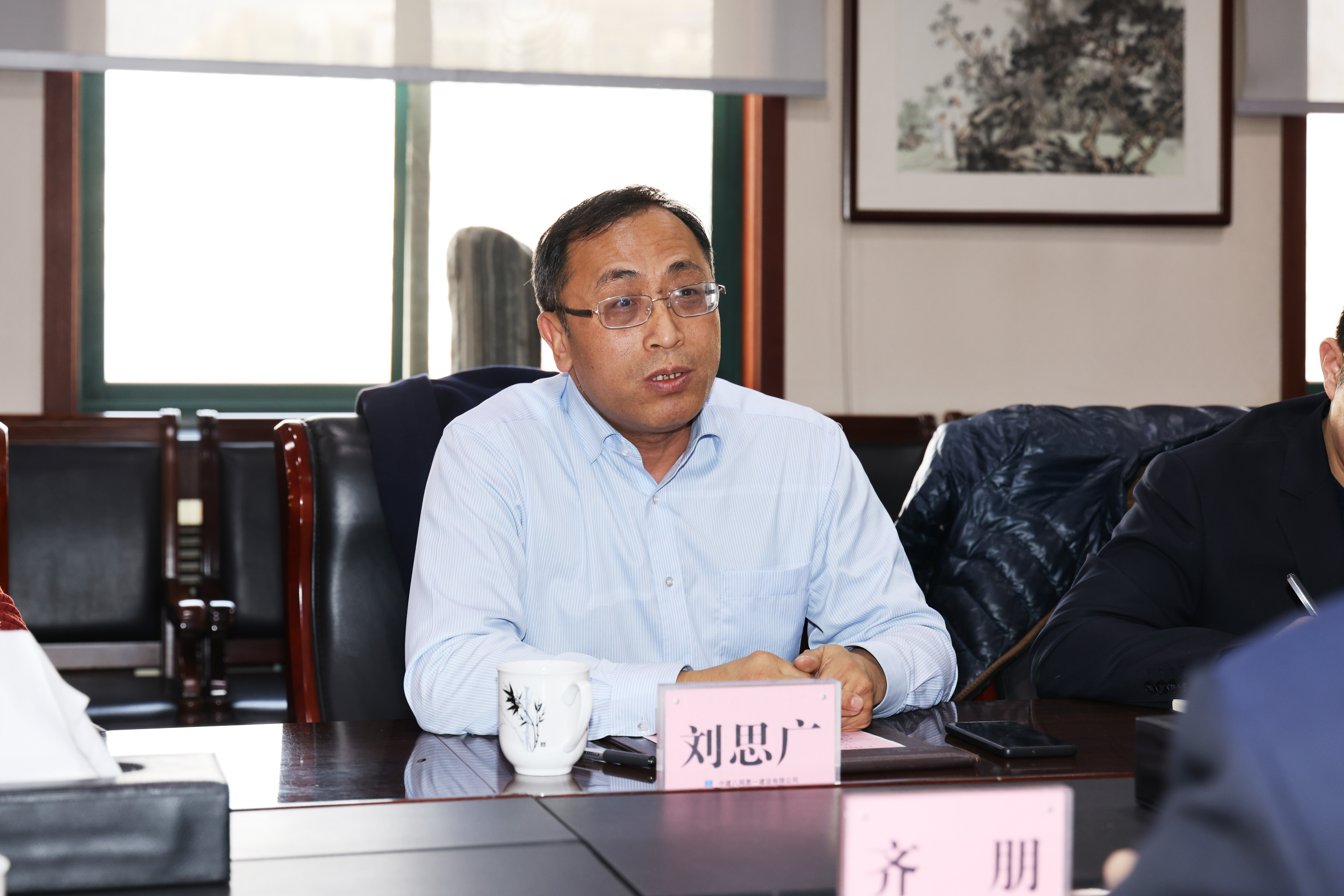 齊朋對劉思廣一行的到來表示熱烈歡迎,對歷下控股集團一直以來的支持表示感謝,介紹了公司的基本情況。他指出,公司作為深耕山東市場多年的建筑央企,與歷下控股集團建立了良好的合作關系,建造了一大批地標性工程,公司將繼續發揚鐵軍精神,強化資源保障,保質保量完成建設任務。希望雙方能夠強化互信合作,為濟南市“打造四個中心,建設現代泉城”的戰略規劃貢獻力量。