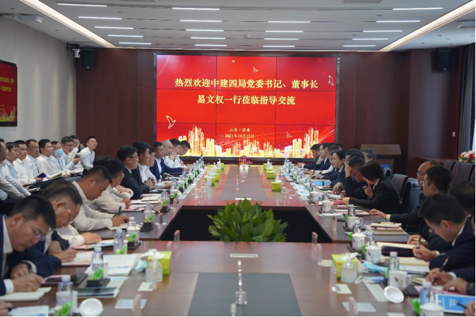 10月13日,中建四局黨委書記、董事長易文權一行到訪中建八局一公司,中建八局黨委副書記、工會主席于金偉,一公司黨委書記、董事長齊朋熱情接待,雙方就強化互信合作、實現互促互進展開深入交流。