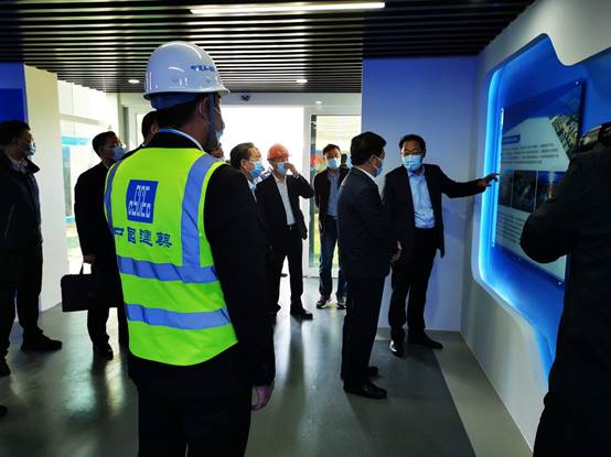 首先,鄭德雁在項目智慧展館聽取沙君明項目建設情況匯報,以及項目經理葉恒山的現場匯報,對八局建設者們鉚足勁頭、開足馬力,干得熱火朝天,表示肯定,并叮囑項目切實抓好疫情防控和施工安全,又好又快推進項目建設,既要做“當年拿地、當年開工、當年竣工、當年投產”的典范,又要做工地疫情防控和安全生產的典范。