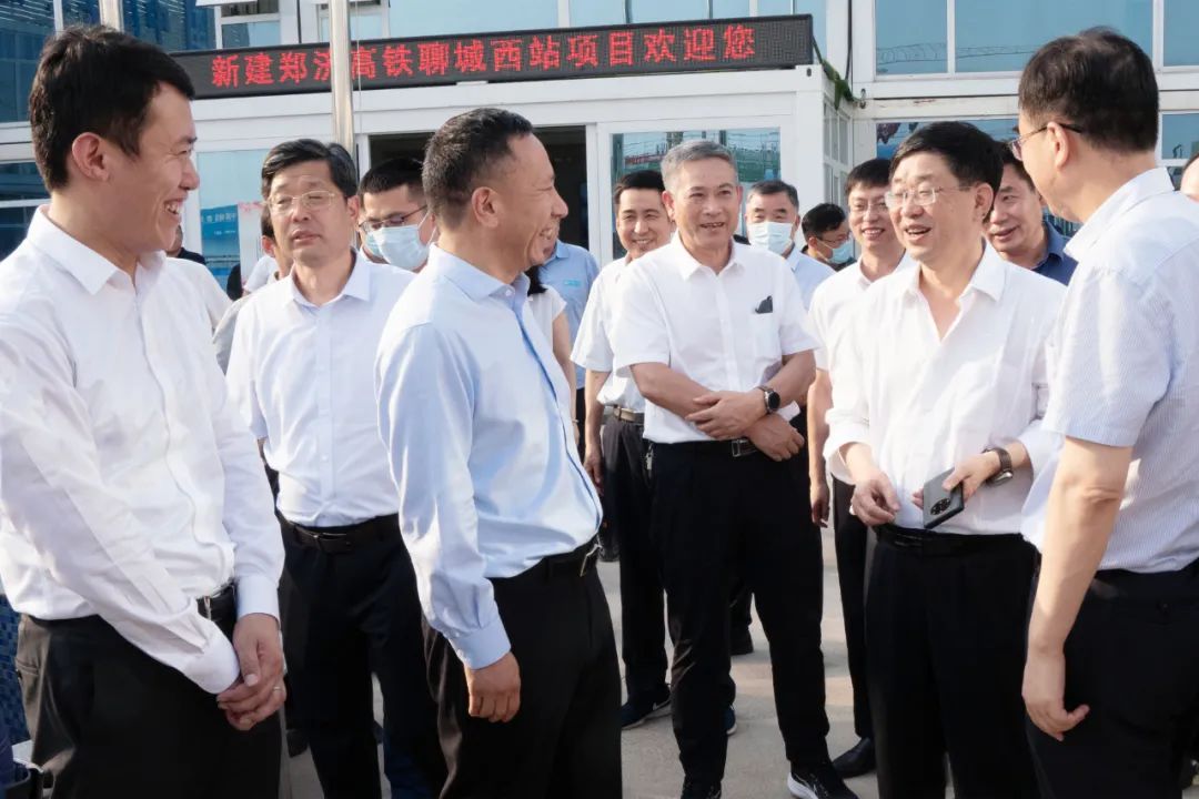 6月20日,國鐵集團黨組成員、副總經理王同軍一行到濟鄭高鐵聊城西站項目調研,山東省政府副秘書長王健,省交通運輸廳副廳級干部胡斌,聊城市副市長田中俊,市交通運輸局局長韓德振;山東鐵投集團黨委書記、董事長姜長興,黨委副書記、總經理王基全,山東鐵投集團副總經理、濟青公司黨委書記、董事長楊俊泉,國鐵濟南局濟鄭高鐵工程建設指揮部指揮長趙永超;中建八局專務劉繼鋒,山東分局黨委書記、局長陳建設,一公司黨委書記、董事長齊朋參加調研。