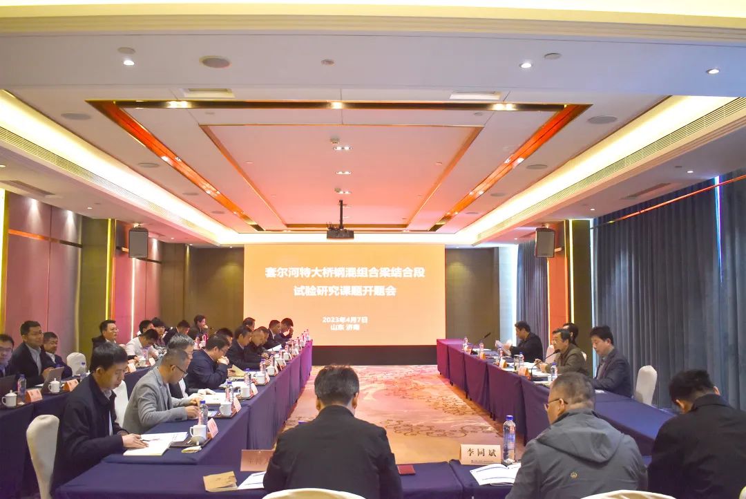 4月7日,《套爾河特大橋鋼混混合梁結合段試驗研究》課題開題會在濟南召開。國內首創的斜截面鋼混結合段試驗研究方案通過業內權威專家評審,標志著套爾河特大橋338米鋼混混合梁段最關鍵的核心技術進入實質性研究階段,助力攻堅世界第一跨徑梁橋。