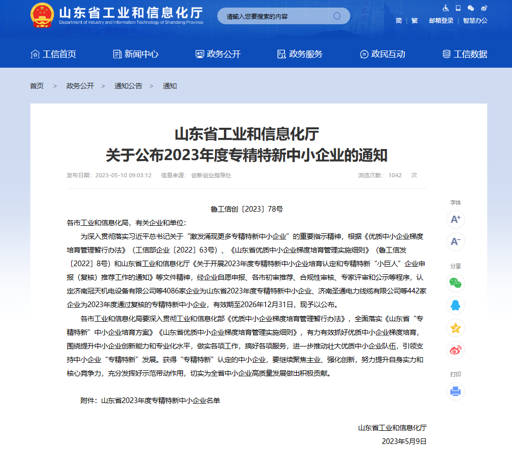 近日,山東省工業和信息化廳公布了2023年度專精特新中小企業名單,中建八局一公司旗下中建科技(濟南)有限公司榮獲山東省“專精特新”中小企業認定,為新型建筑工業化發展貢獻力量。