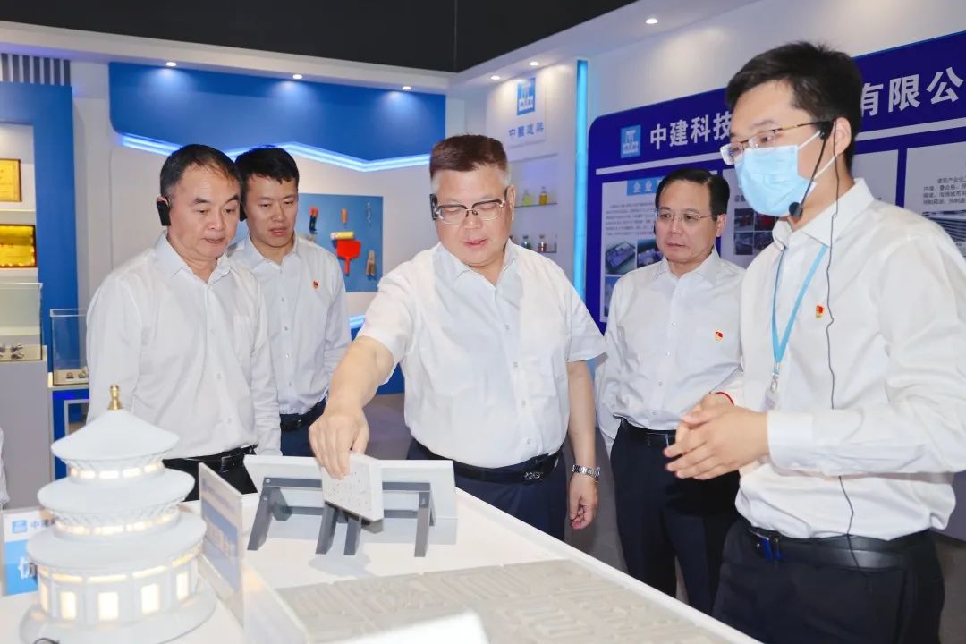 指導組一行先后深入濟南都市陽臺、黃河體育中心專業足球場項目現場,了解項目建設歷程、安全質量管理、創新技術應用等方面情況,肯定了項目堅持黨建引領、建強支部堡壘取得的成效。在中國建筑綠色產業園(濟南),指導組一行走進建筑產業化工廠、新型模架智造基地、BIM+機電一體化智造基地,近距離參觀產品生產線,與一線產業工人深入交流,了解企業自主研發的智慧工廠管理平臺及產品應用情況。