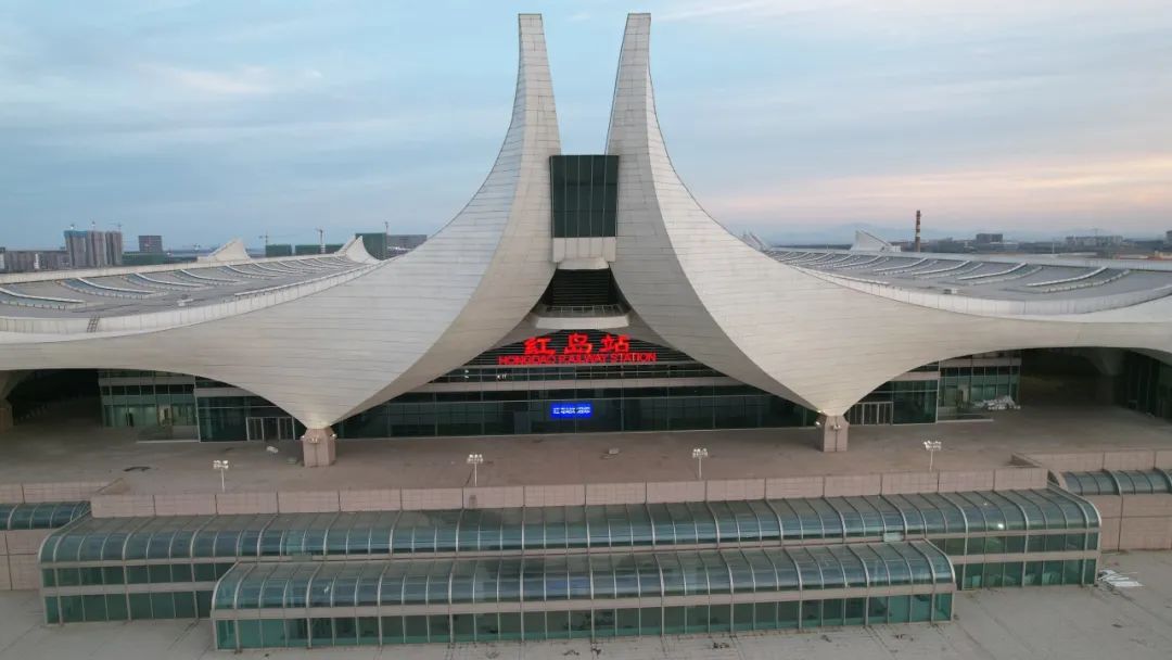 濟(jì)青高鐵紅島站位于青島市城陽區(qū),是濟(jì)青高鐵設(shè)計(jì)終點(diǎn)站。站房面積7萬平方米,采用線上式布置,由下至上分別為出站層、廣場層、站臺(tái)層、高架候車層及旅服夾層,建筑總高度52.993米,紅島站站場設(shè)計(jì)規(guī)模10臺(tái)20線,是山東省第二大、青島市最大的高鐵站。