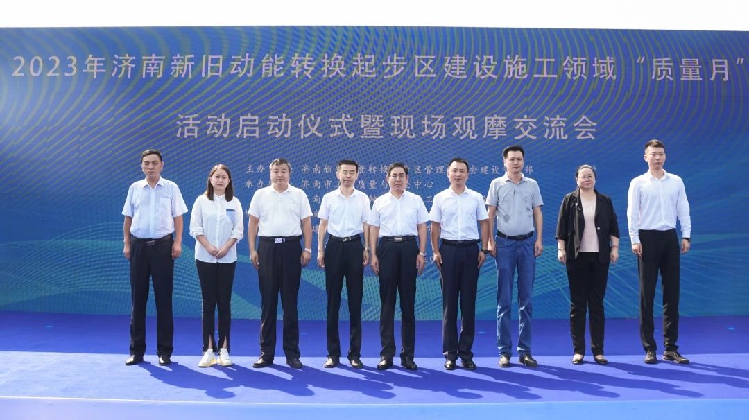 “質量月”活動啟動儀式上,濟南城建動能轉換開發建設集團有限公司、中建八局一公司做表態發言,起步區管委會建設管理部副部長于宗曉部署“質量月”活動安排。濟南市住房和城鄉建設局一級調研員魏濤指出,各參建企業要樹牢質量第一的意識,全面落實質量管控主體責任,切實開展”質量觀摩立標桿、質量培訓提素質、專項行動強管理”系列活動,讓“質量月”成為推動起步區高質量發展的重要抓手。