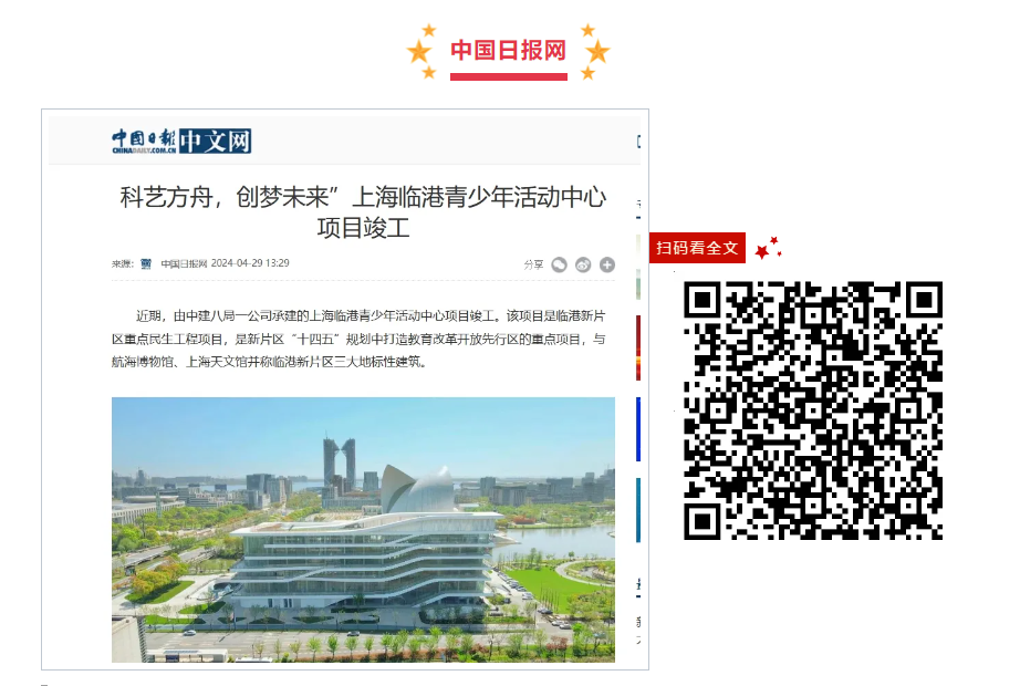 內容摘要:4月29日,中國日報網報道《科藝方舟,創夢未來”上海臨港青少年活動中心項目竣工》,該項目是臨港新片區重點民生工程項目,與航海博物館、上海天文館并稱臨港新片區三大地標性建筑。
