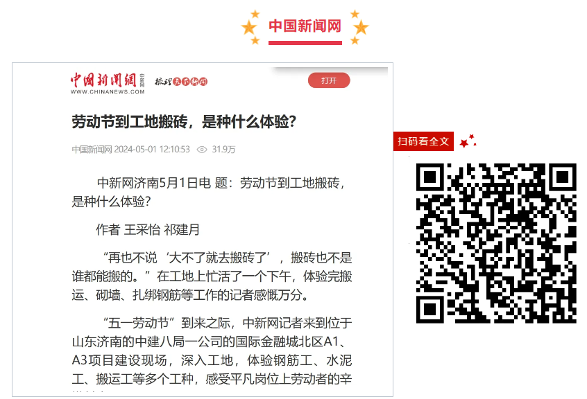 內容摘要:5月1日,中國新聞網報道《勞動節到工地搬磚,是種什么體驗?》。“五一勞動節”到來之際,中新網記者來到位于中建八局一公司國際金融城北區A1、A3項目建設現場,深入工地,體驗鋼筋工、水泥工、搬運工等多個工種,感受平凡崗位上勞動者的辛勤付出。