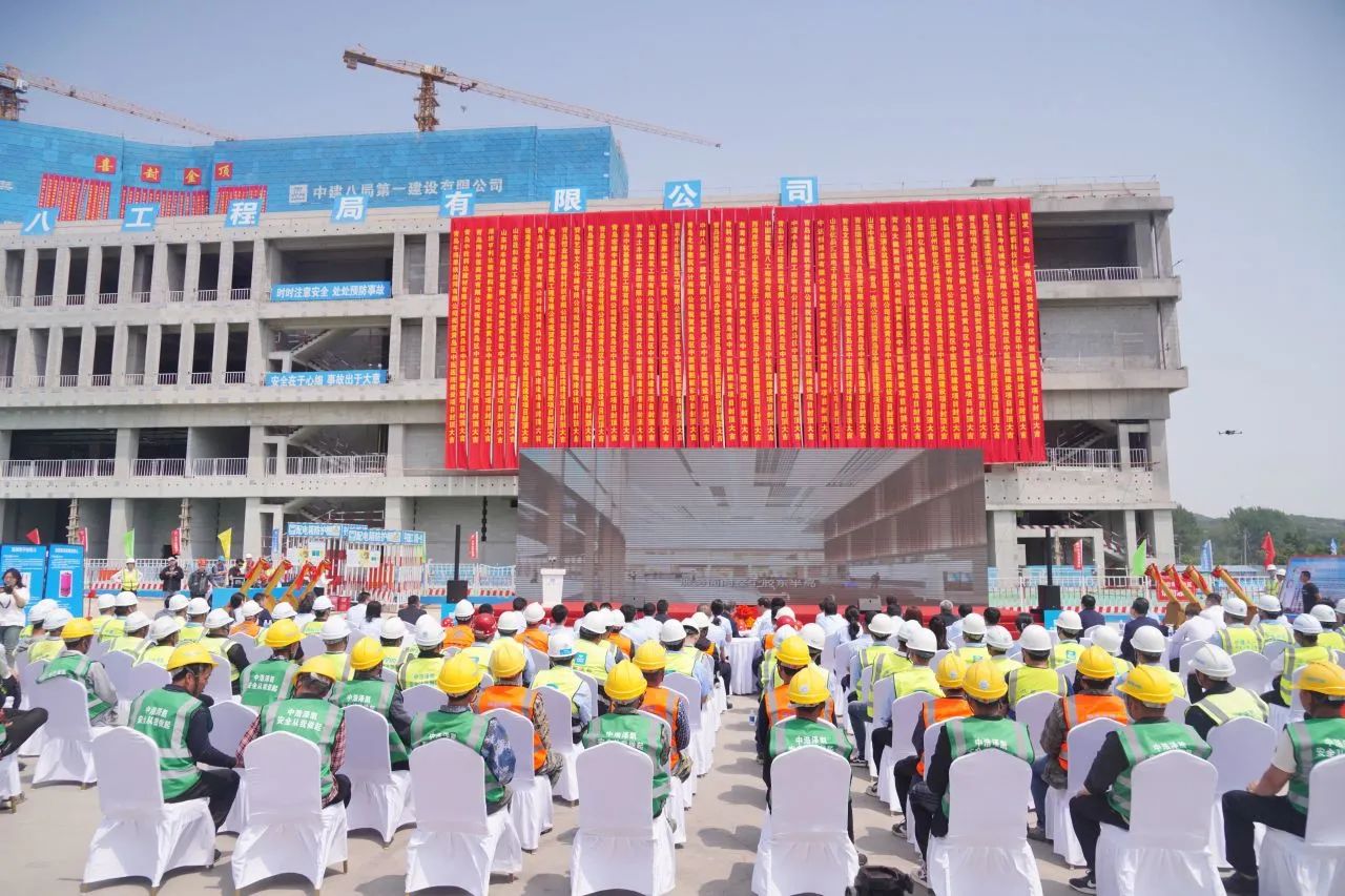 封頂儀式過后,項目舉辦勞動競賽啟動儀式,掀起大干熱潮!青島市住房和城鄉建設局一級調研員、青島市建設工會主席曾林,中建八局一公司青島公司相關負責人,以及工人代表90余人。