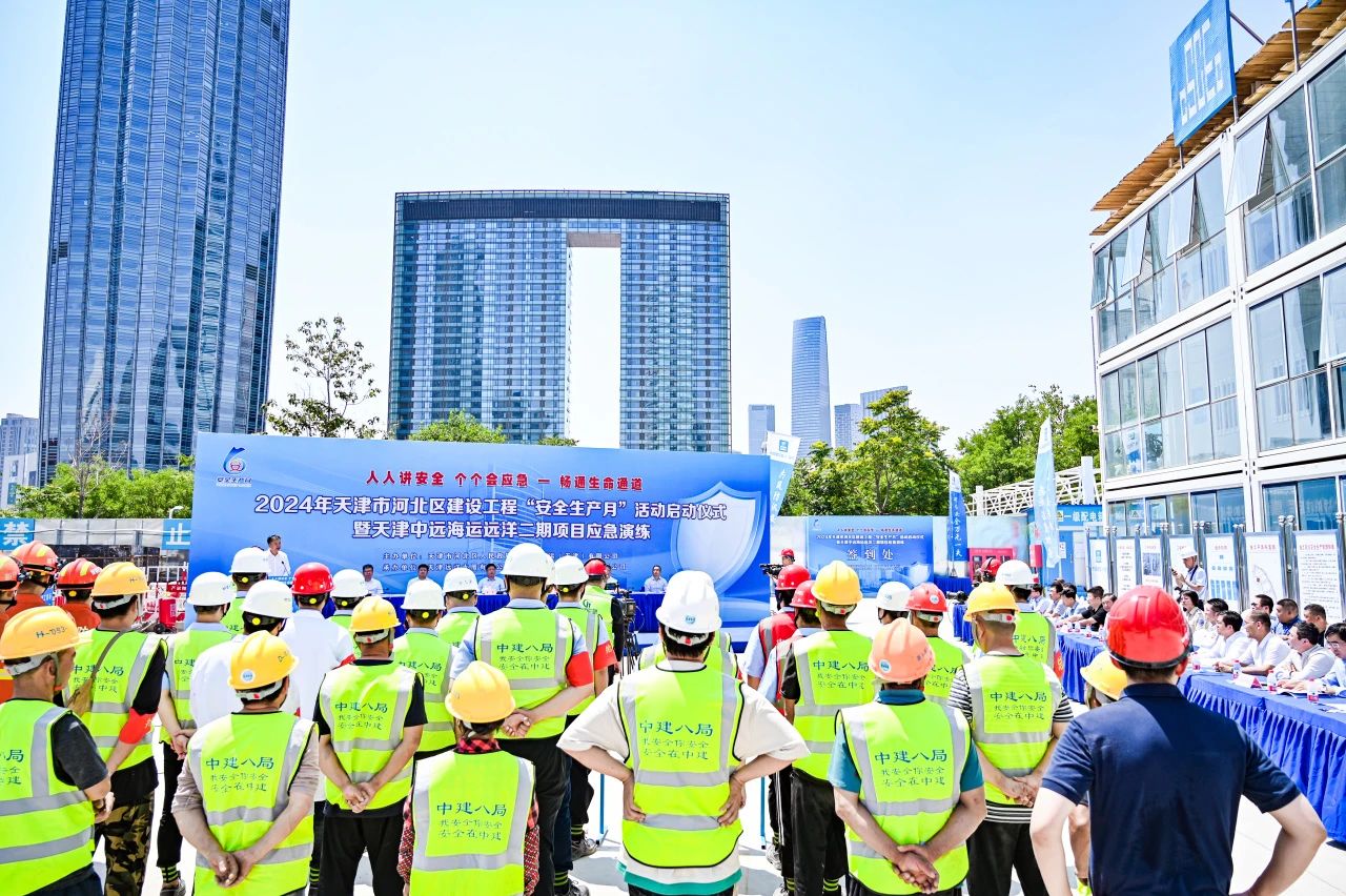 為響應全國第23個“安全生產月”活動要求,6月3日,天津市河北區建設工程“安全生產月”啟動儀式暨項目應急演練活動在中建八一天津中遠海運遠洋二期項目舉行。