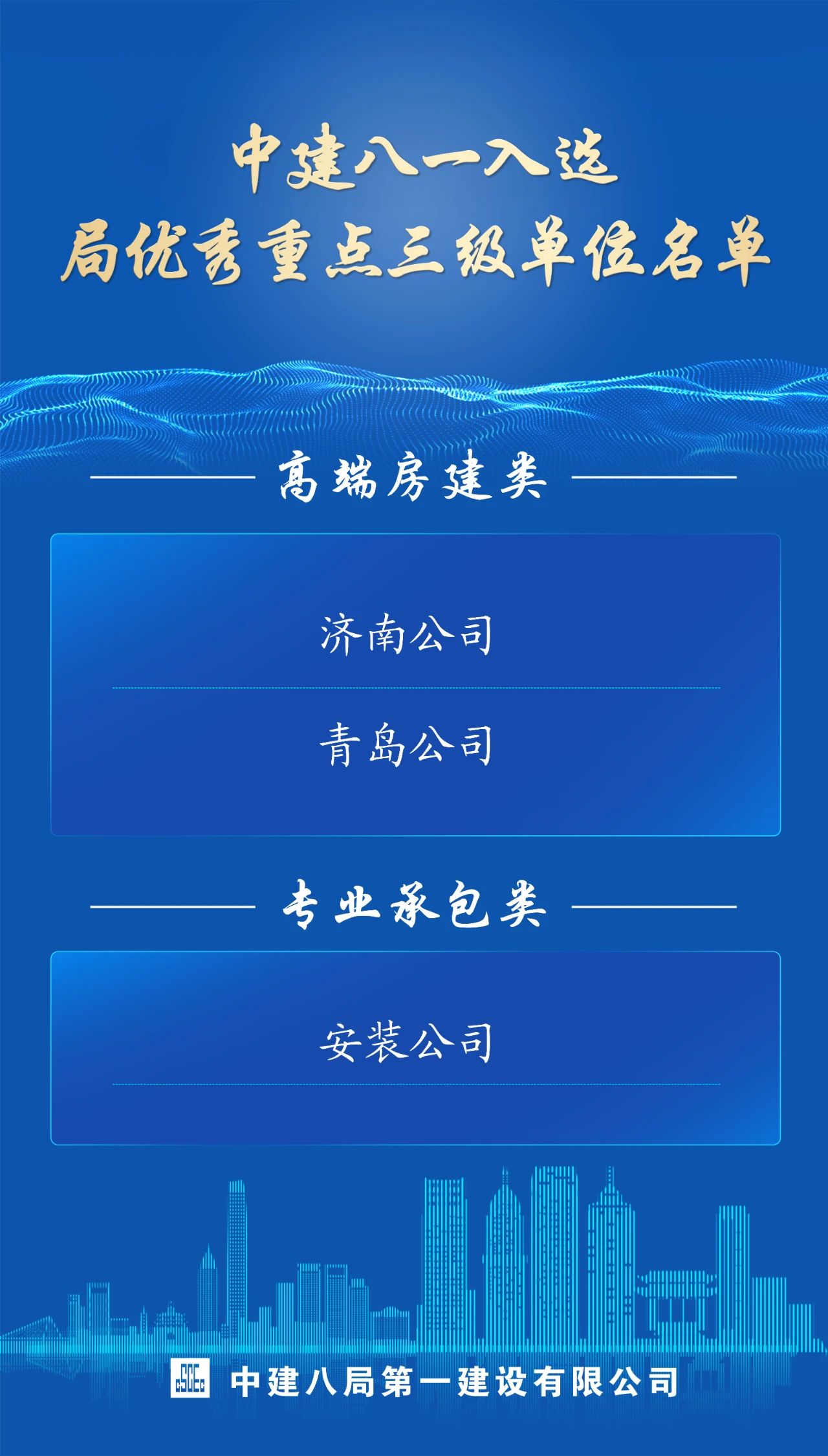 7月22日,中建八局2023年度優秀重點三級單位名單公布中建八一共3家單位上榜其中,濟南公司、安裝公司分別位列高端房建類、專業承包類第一名