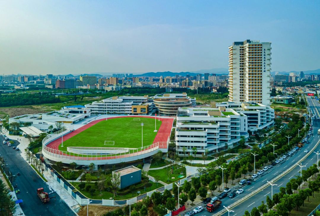 學校位于東莞市濱海灣新區,總建筑面積15.4萬平方米,包含教學樓及教師公寓、學生宿舍、游泳館圖書館、體育館等多功能設施,擬開辦小學初中各48個班,提供學位4560個,建成后將著力打造成東莞具有示范性、灣區具有影響力的市屬名校。