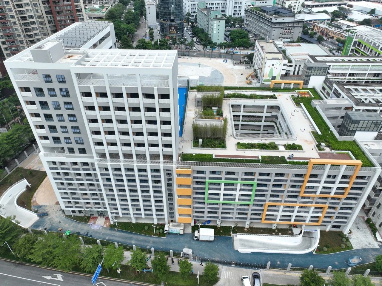 項目位于深圳市龍崗區,總建筑面積5.88萬平方米,新建建筑面積3.57萬平方米,涵蓋教學樓、辦公樓、運動場、宿舍等功能布局,建成后將新增1820個學位,有效緩解片區學位壓力。