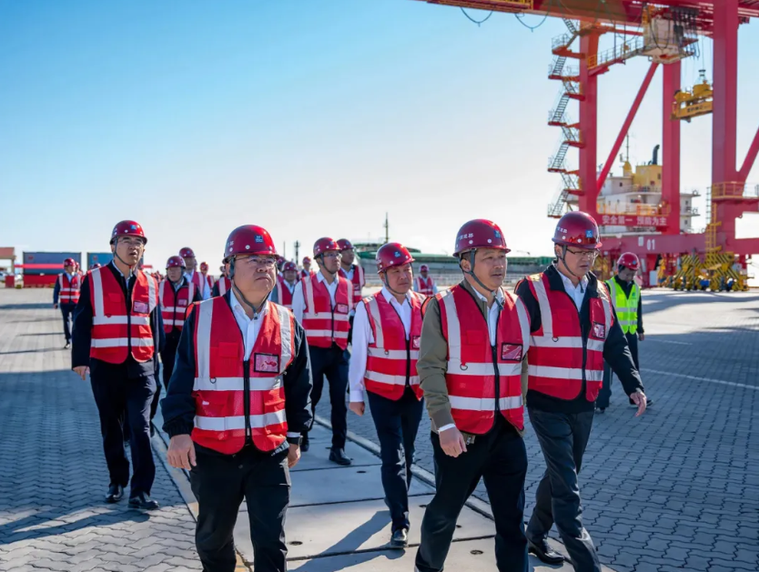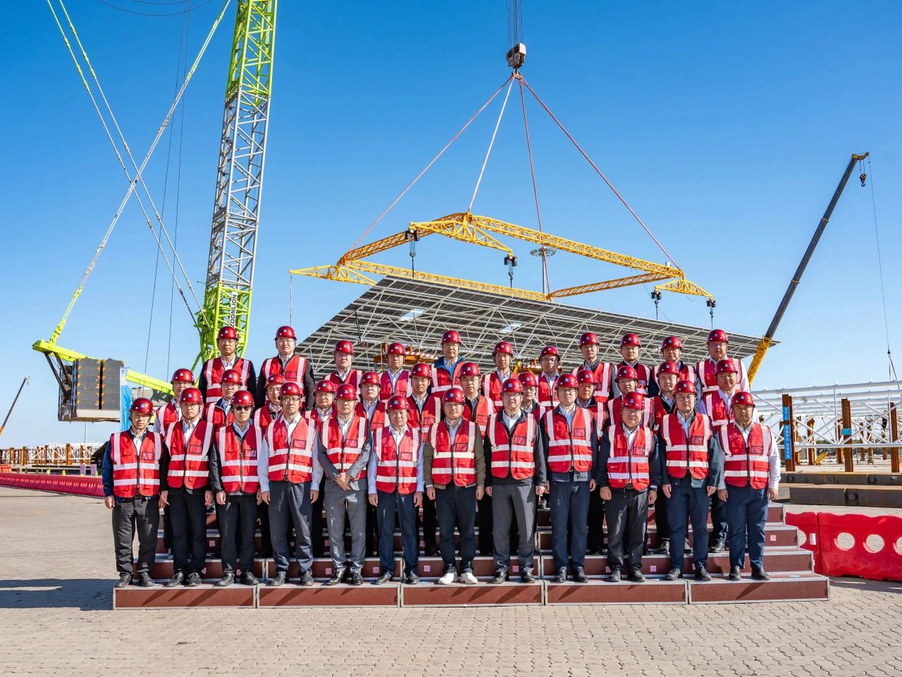 與會人員走進(jìn)東營HG14海上光伏項(xiàng)目實(shí)地察看光伏平臺拼裝施工并圍繞施工工藝、安全監(jiān)管措施安全技術(shù)創(chuàng)新應(yīng)用等方面進(jìn)行交流