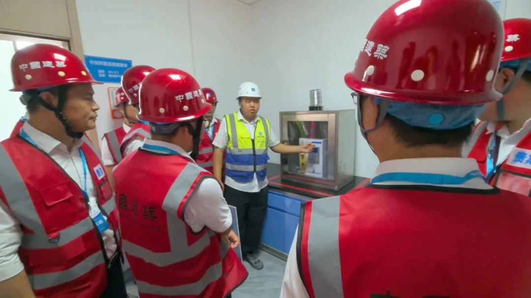 在自建拌合站,學員參觀了工地試驗室與料倉,并親自動手進行鋼筋力學試驗與粉煤灰性能快速檢測試驗等。