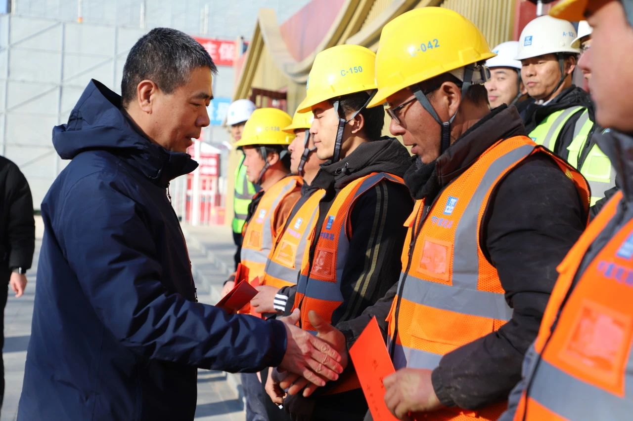 吳疆代表中國海員建設工會向一線職工和工友代表致以親切問候和新春祝福,詳細詢問項目建設進展和建設者們的生活工作情況,叮囑大家要做好防寒保暖工作,強化自我保護意識,以健康平安迎接新的一年。