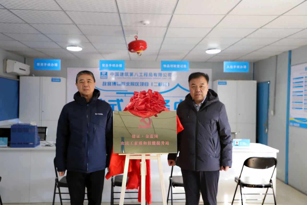 期間,吳疆一行參觀調研了項目綜合智慧展廳、職工書屋、幸福工友村等設施,認真了解了項目整體概況、管理舉措、工會建設等方面的情況,對各項工作給予了充分肯定。吳疆與劉建波共同為項目“建證·金藍領”農民工素質和技能提升站揭牌。