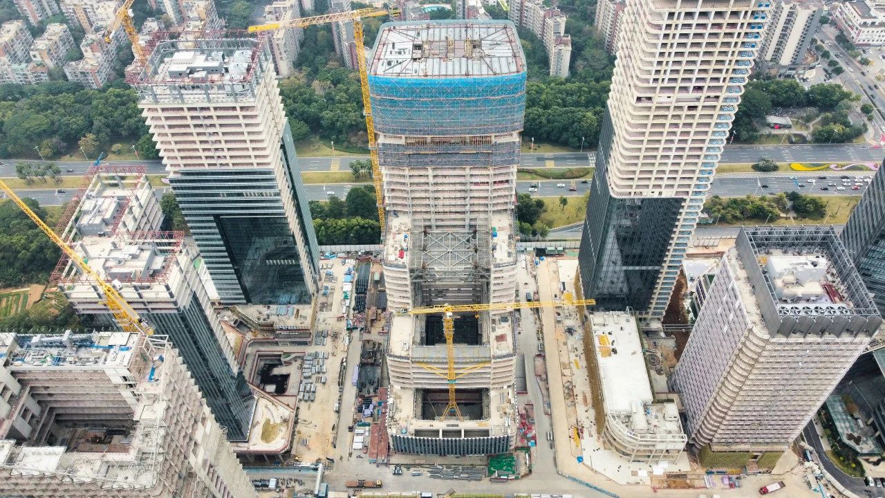 東莞南城商貿金融大廈項目位于東莞市國際商務區首開區,總建筑面積19.6萬平方米,集商業、辦公等業態于一體,是東莞CBD首開區八大項目之一,國際商務區標志性甲級寫字樓。當前,項目已完成全面復工200余名工人正在進行主體結構施工。